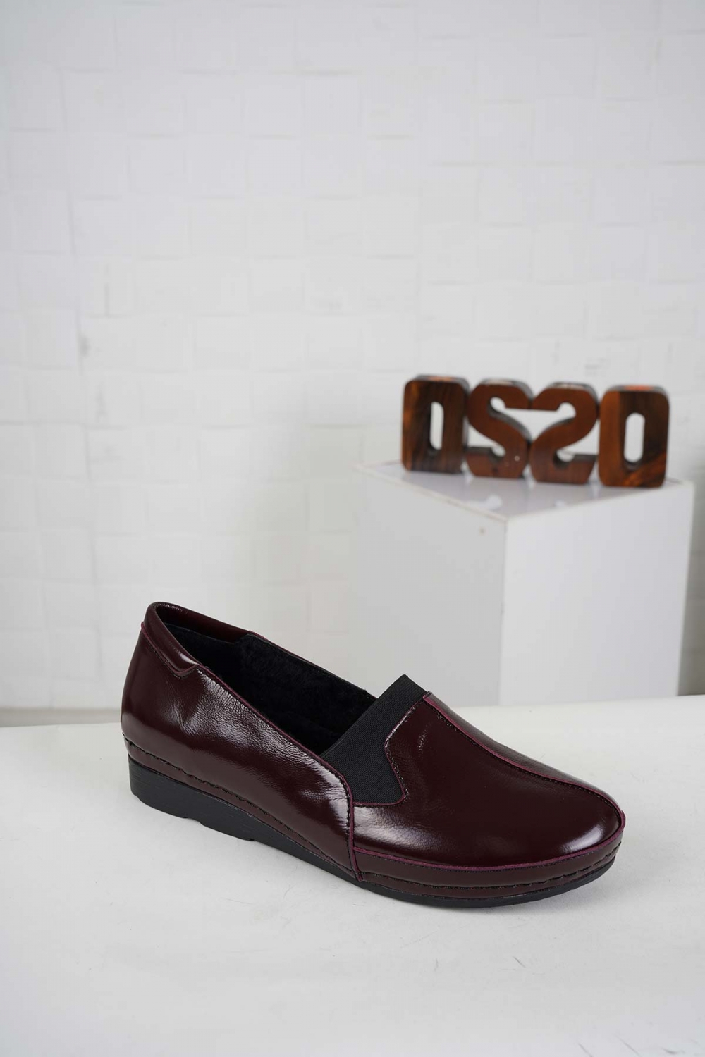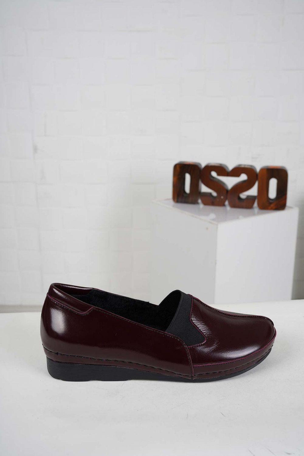 Hakiki Deri Kürklü Bordo Rugan Kadın Comfort Ayakkabı 242177101