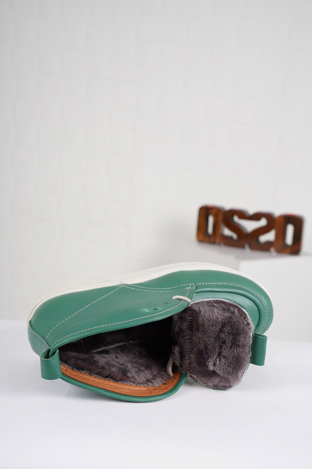 Hakiki Deri Kürklü Çağla Yeşil Kadın Düz Bot 222244204