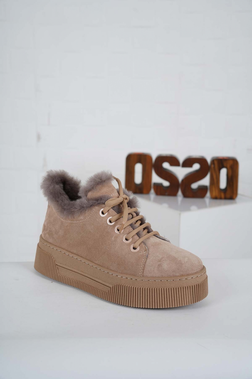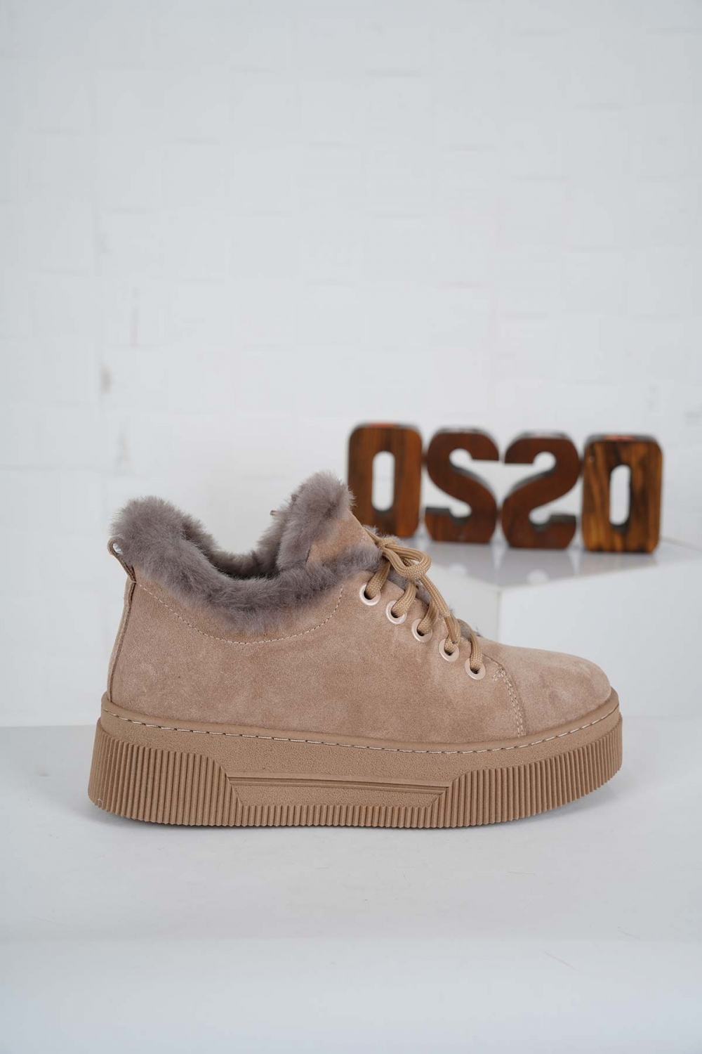 Hakiki Deri Kürklü Cappucino Süet Kadın Sneaker Bot 232225200