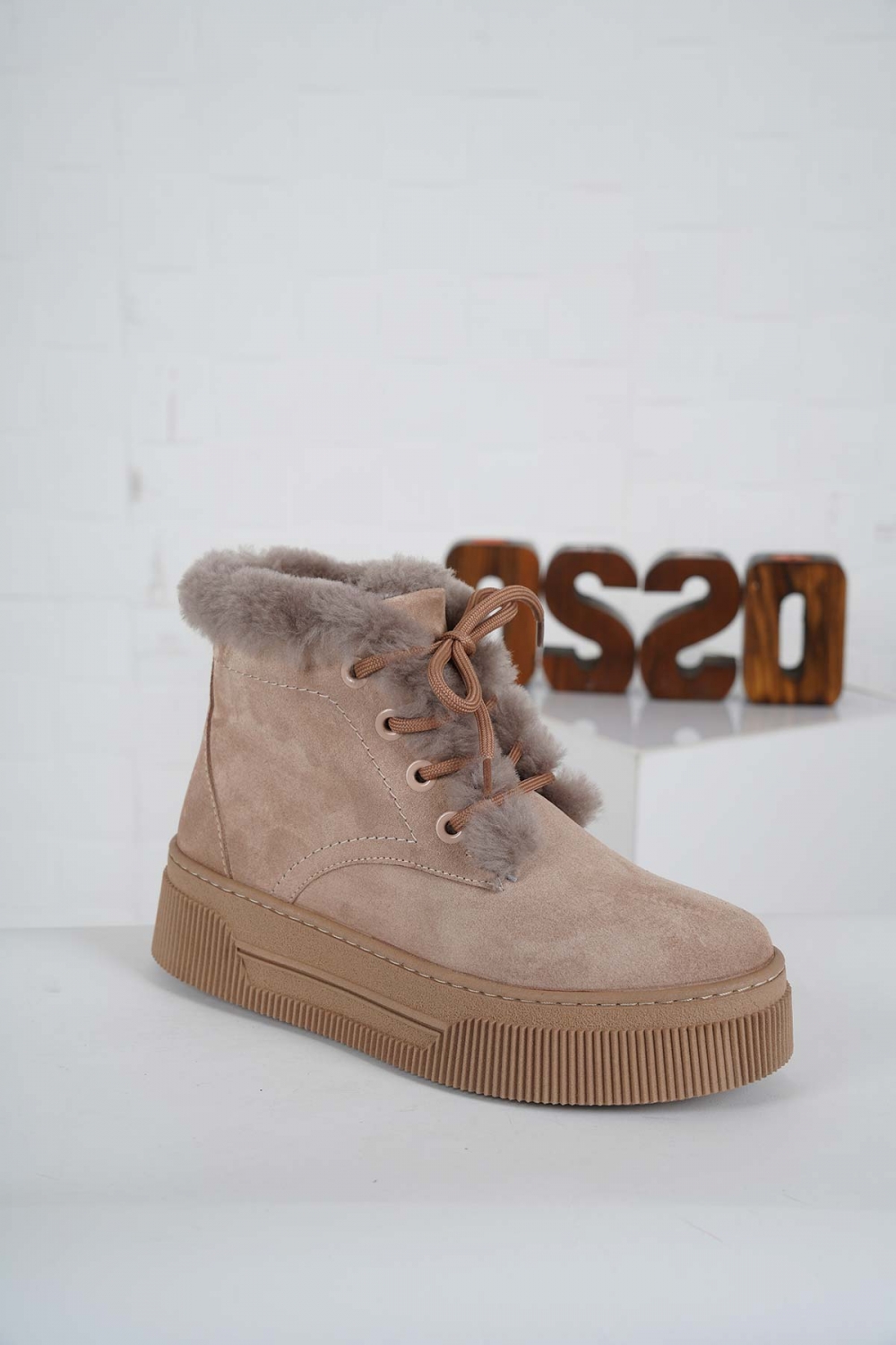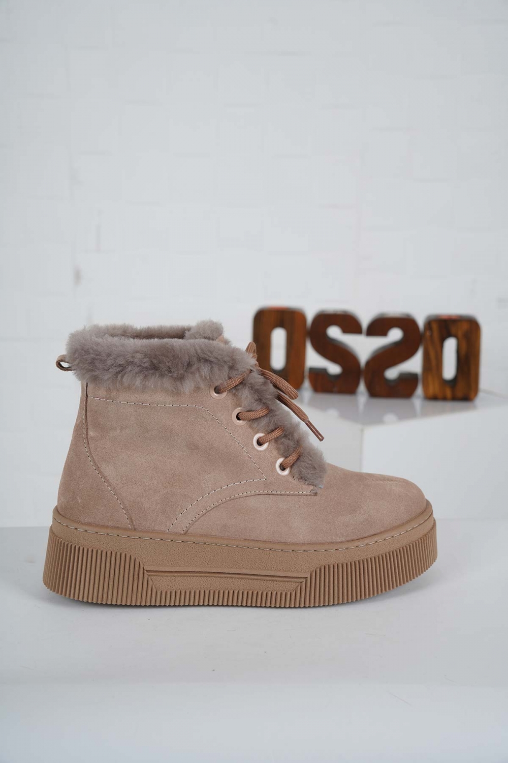 Hakiki Deri Kürklü Cappucino Süet Kadın Sneaker Bot 232225202