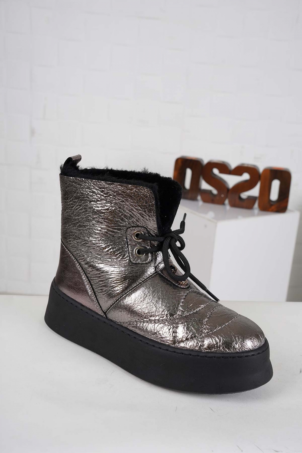 Hakiki Deri Kürklü Siyah Kadın Casual Bot 252189203