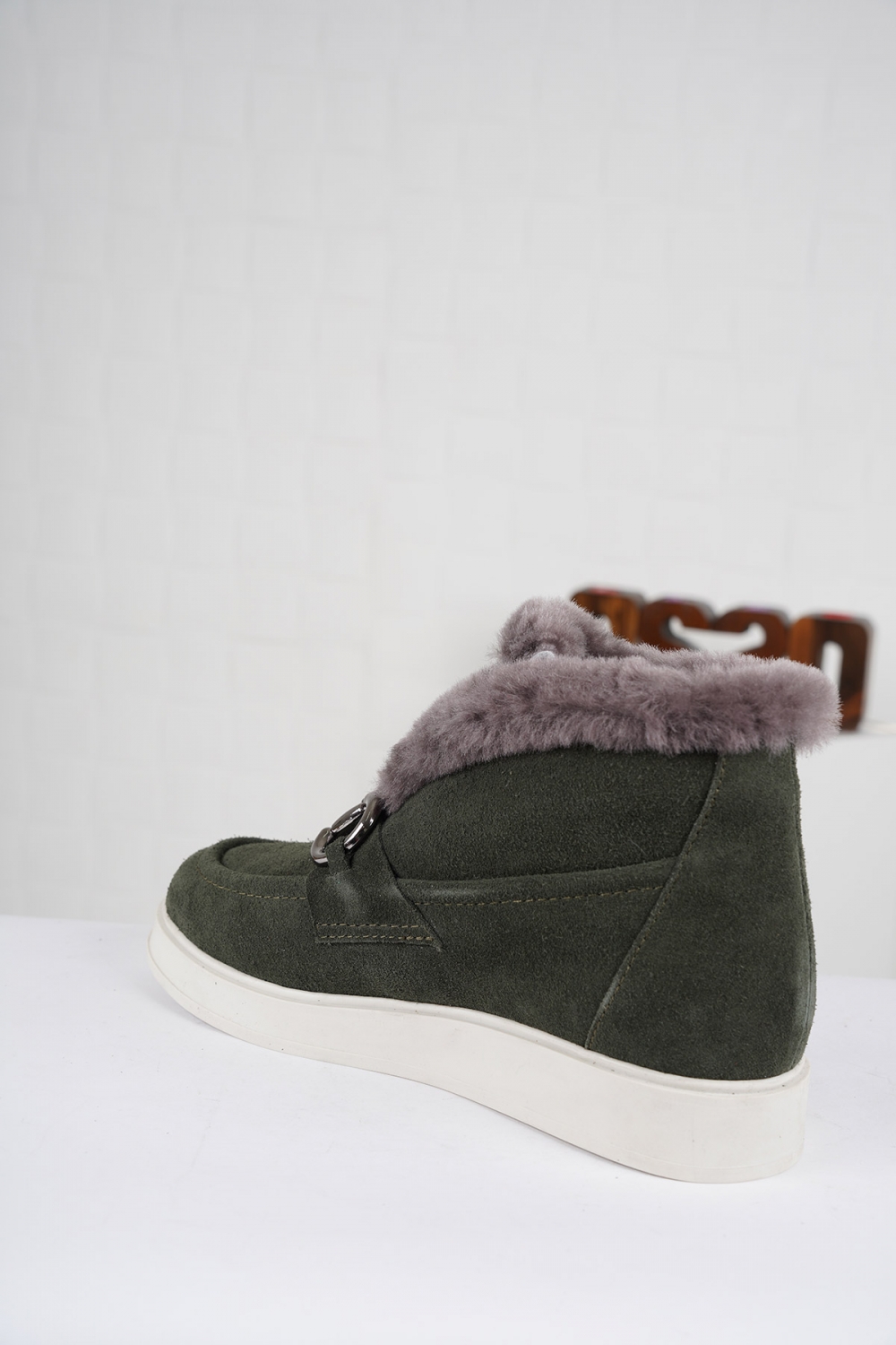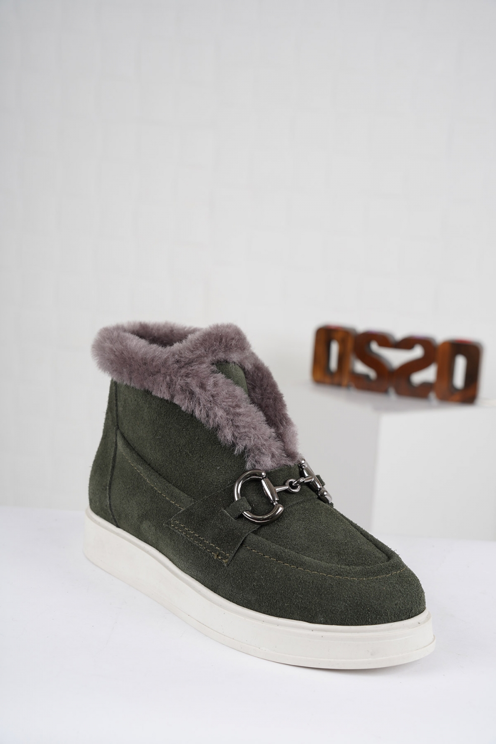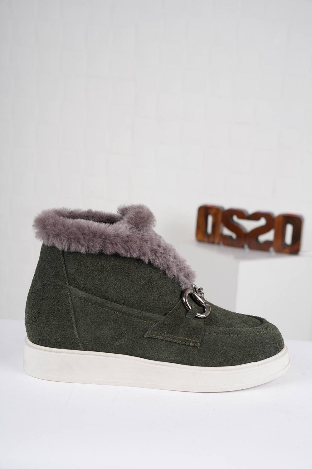 Hakiki Deri Kürklü Çimen Yeşil Süet Kadın Düz Bot 222244205