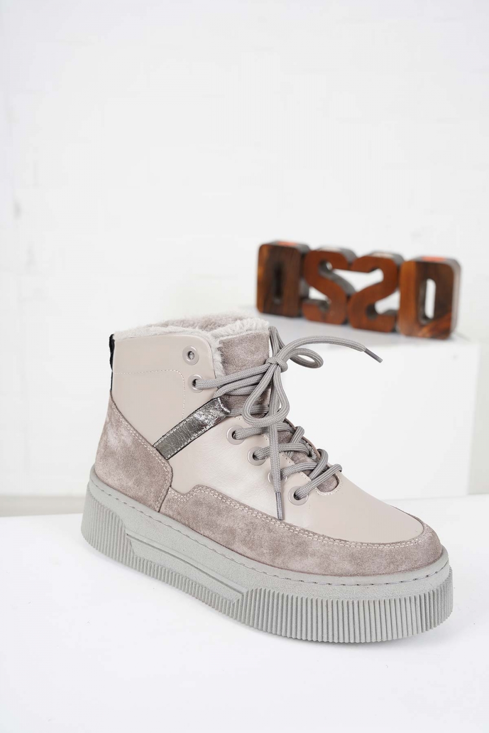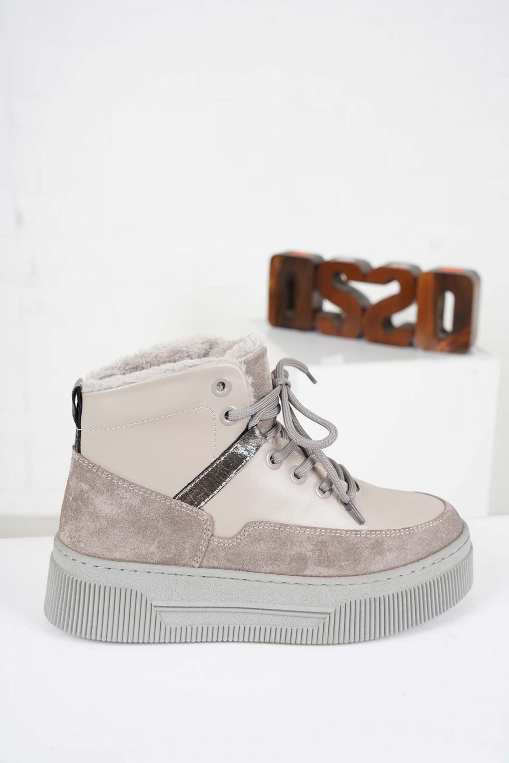 Hakiki Deri Kürklü Gri Süet-Gri Kadın Sneaker Bot 232225209