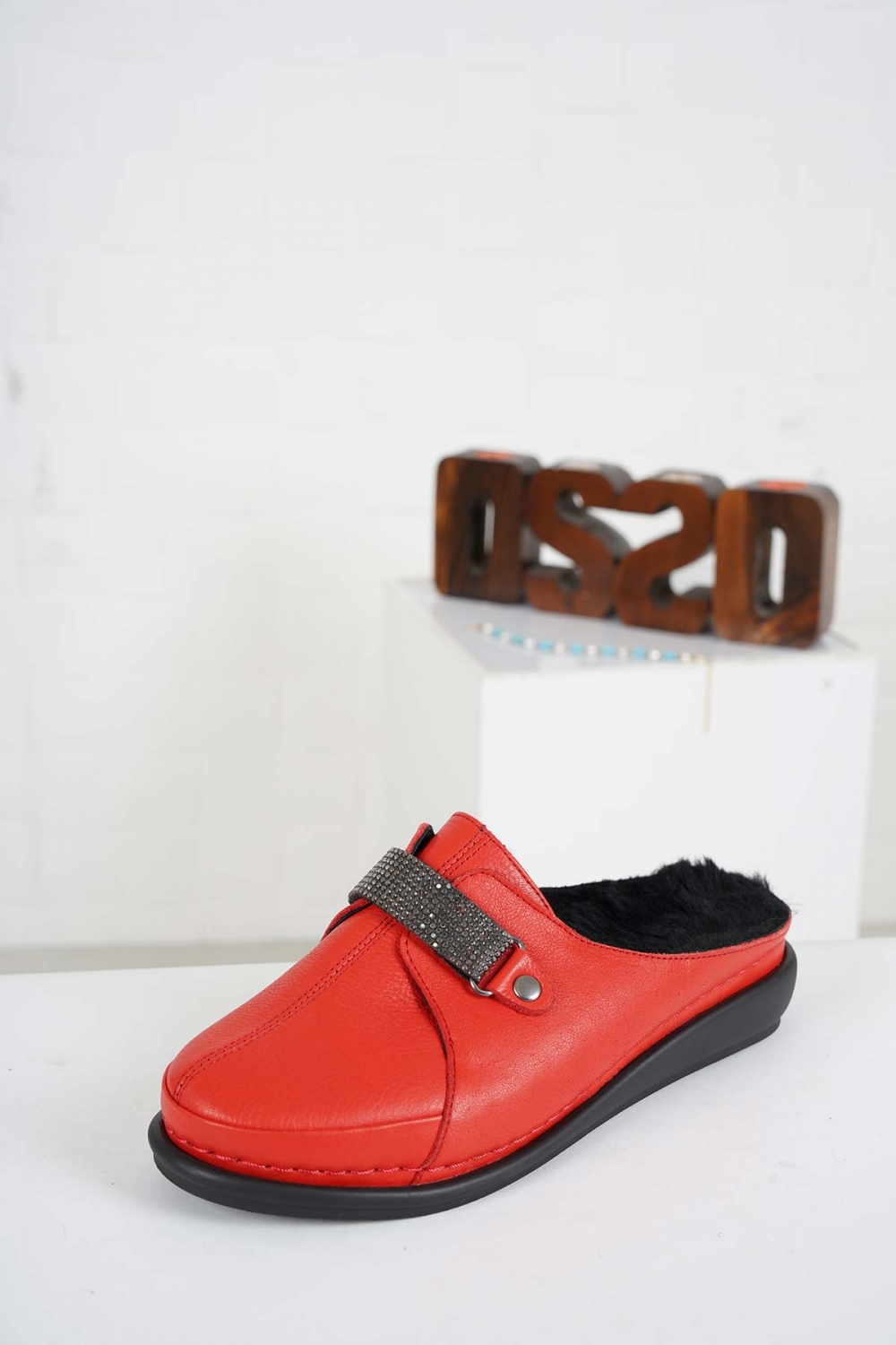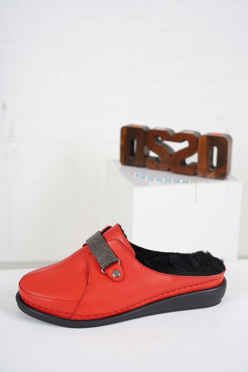 Hakiki Deri Kürklü Kırmızı Kadın Comfort Sabo 232177704