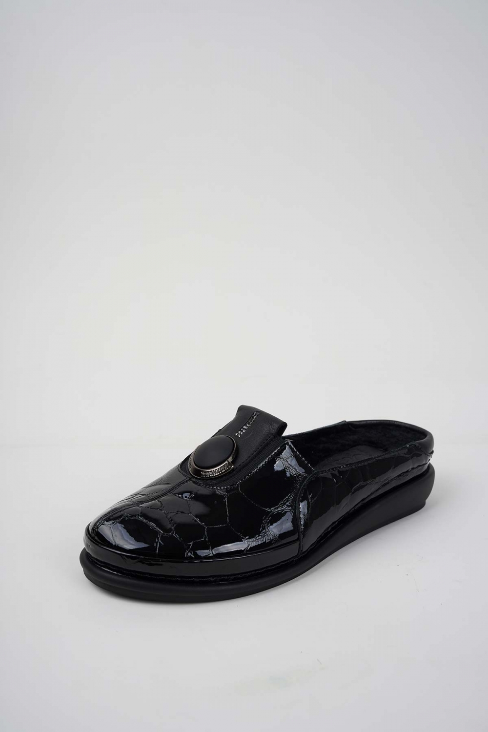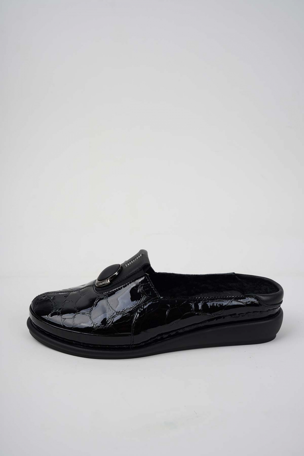 Hakiki Deri Kürklü Siyah Fasulye Rugan Kadın Comfort Sabo 242177707