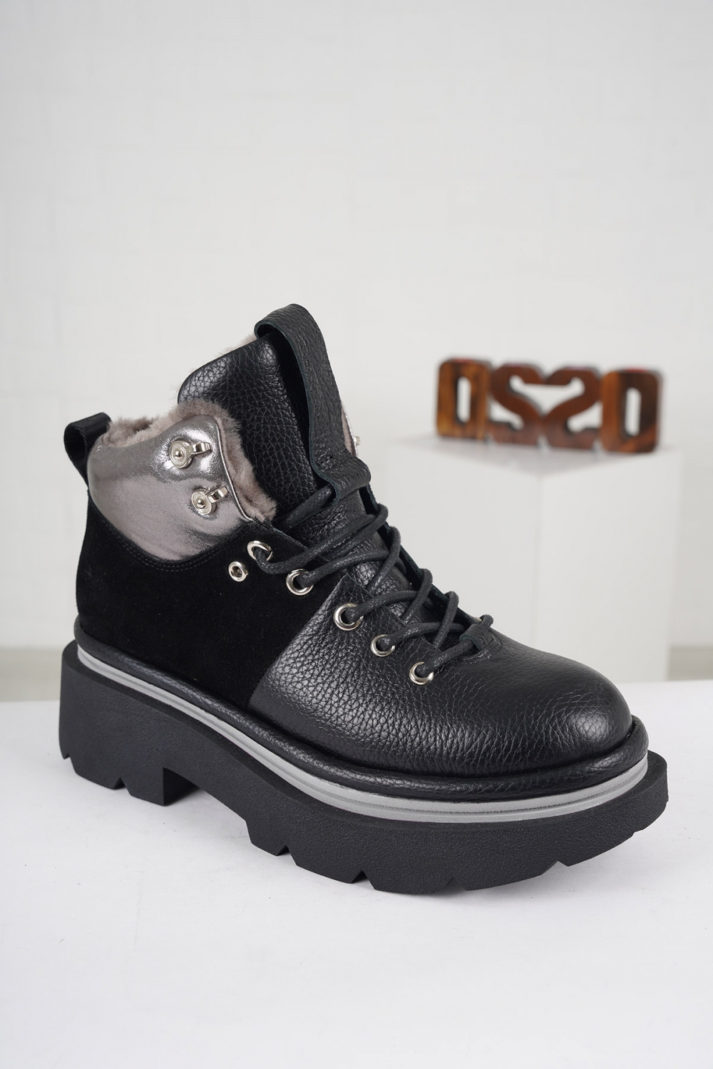 Hakiki Deri Kürklü Siyah Kadın Casual Bot 252189203