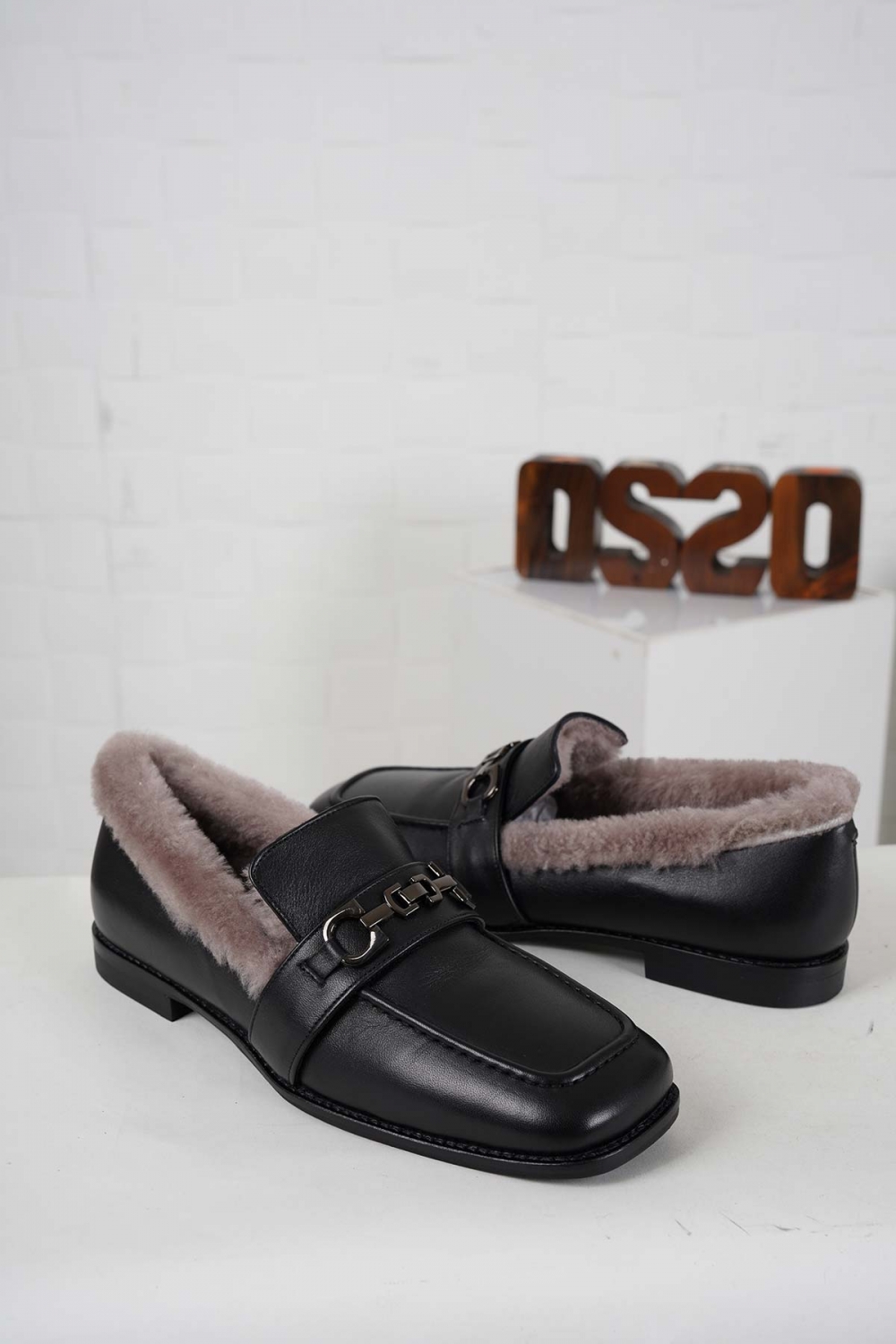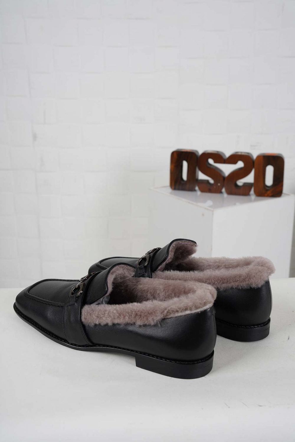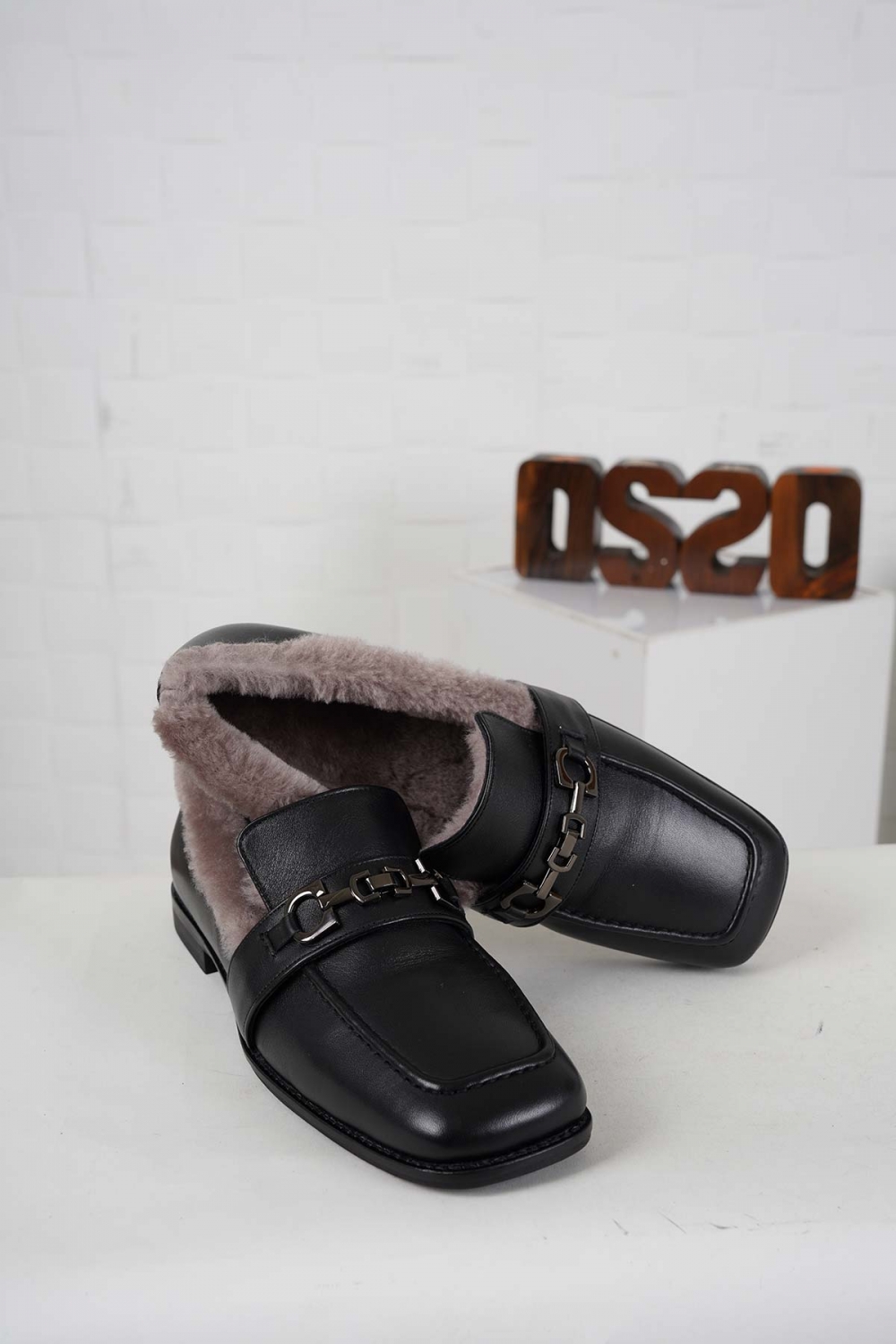 Hakiki Deri Kürklü Siyah Kadın Casual Ayakkabı 242127115