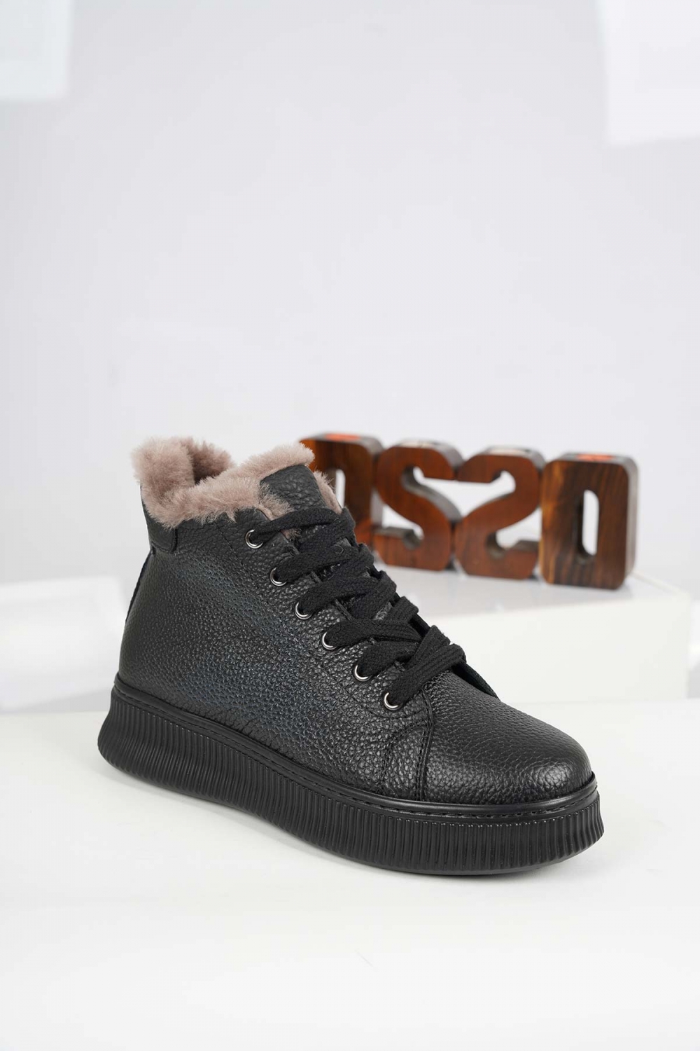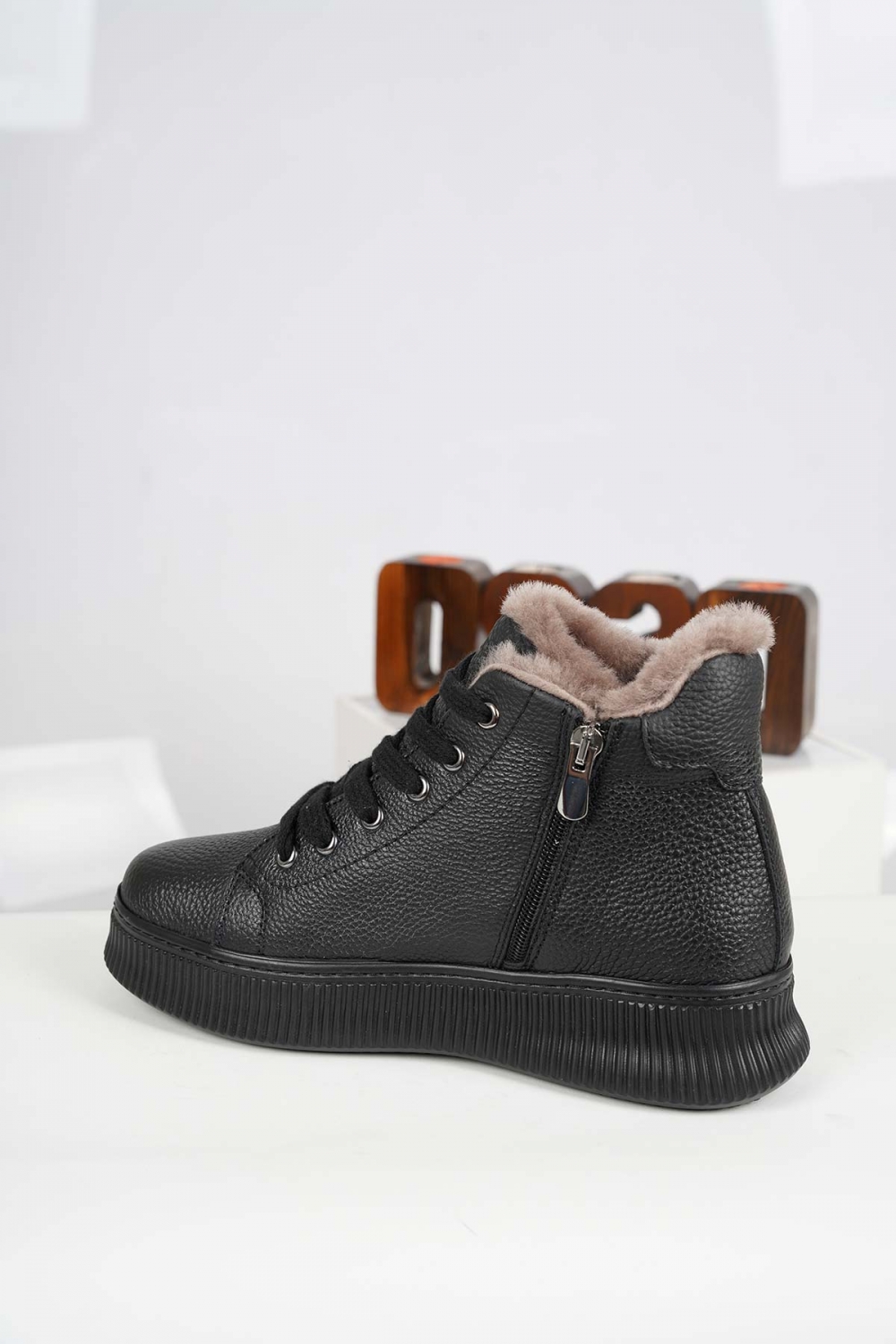 Hakiki Deri Kürklü Siyah Kadın Casual Bot 252189203