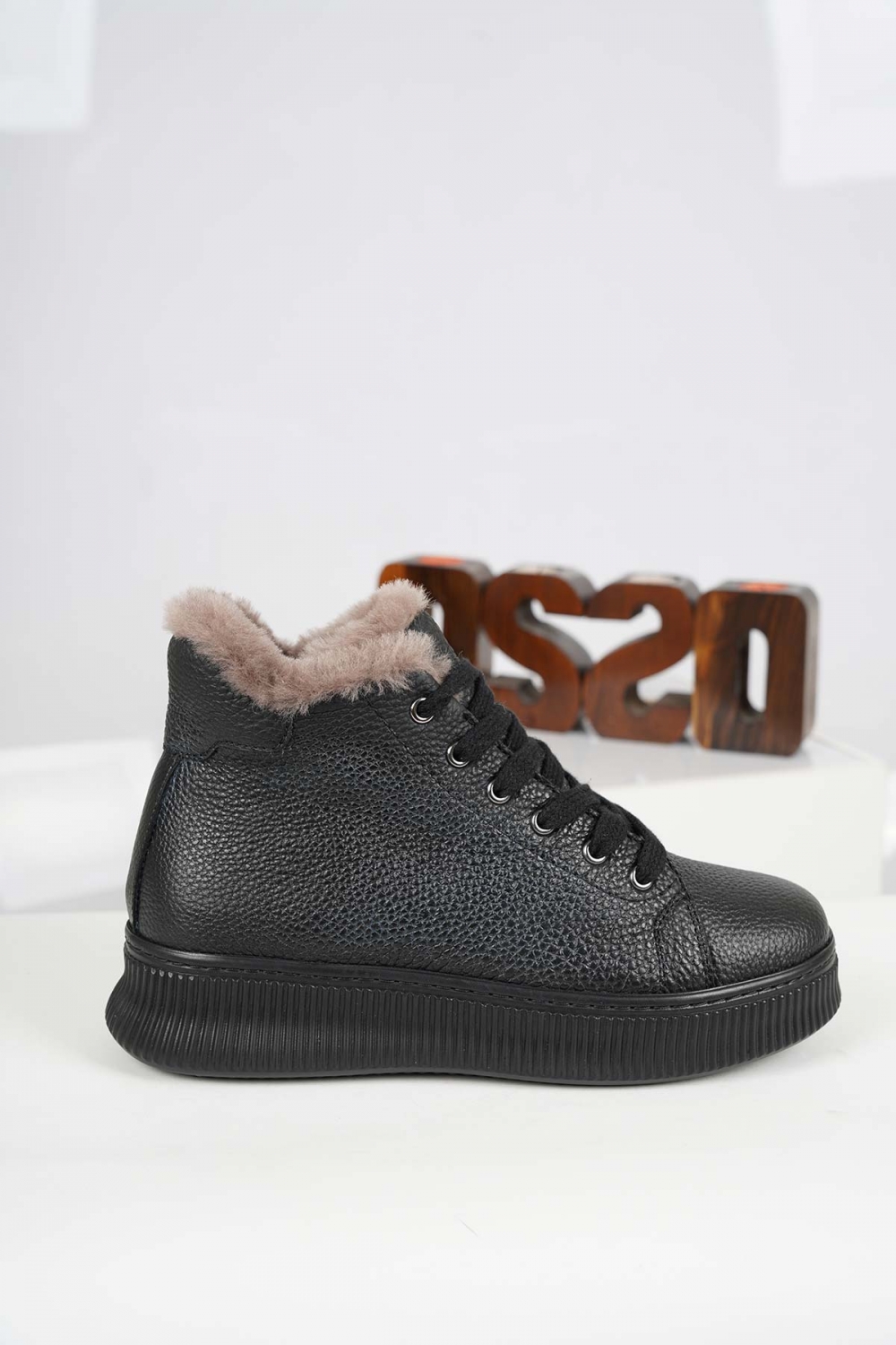Hakiki Deri Kürklü Siyah Kadın Casual Bot 232114202