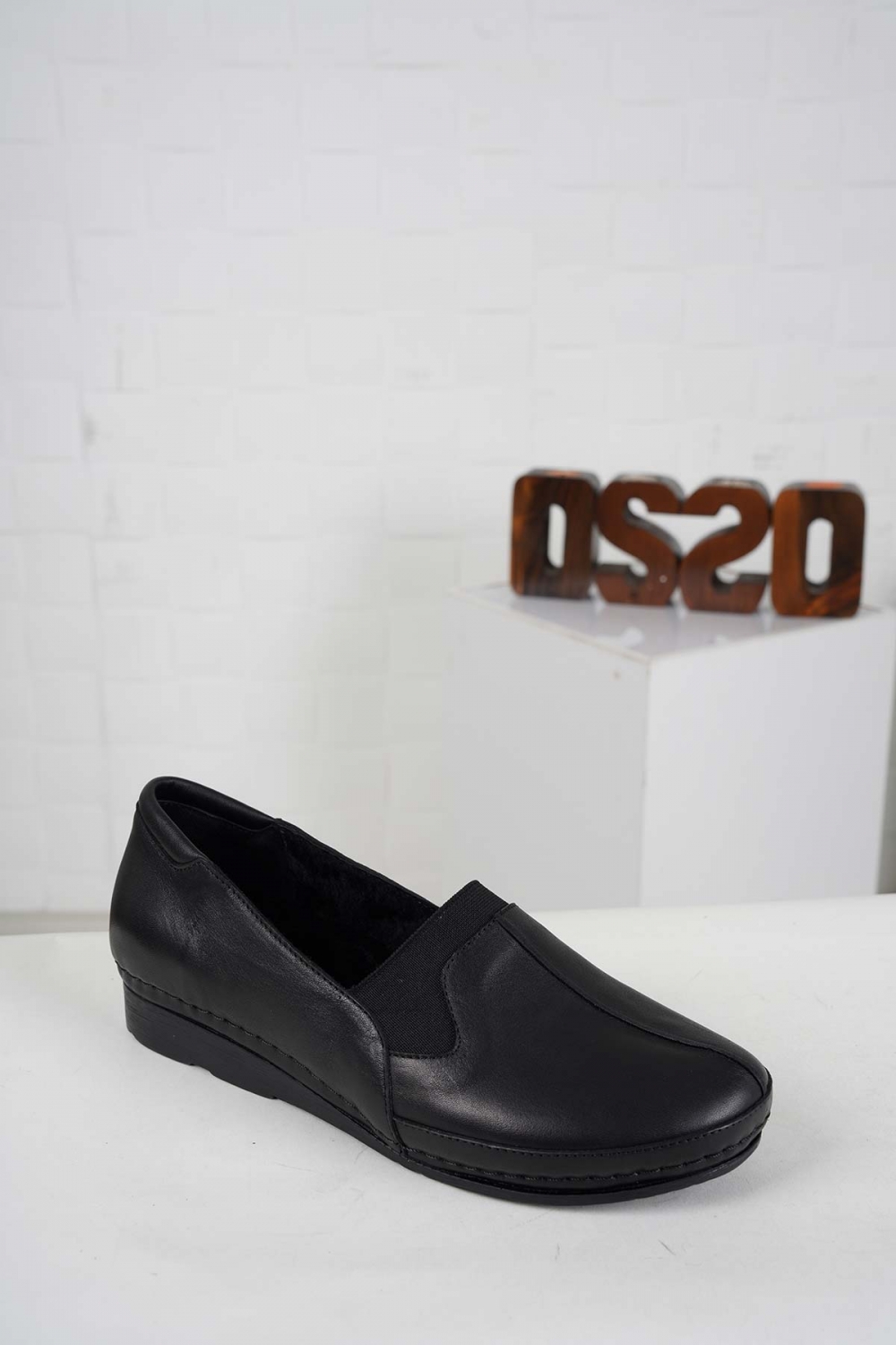 Hakiki Deri Kürklü Siyah Kadın Comfort Ayakkabı 242177101