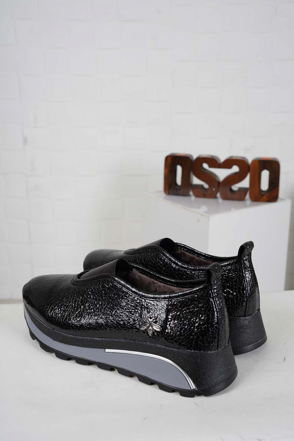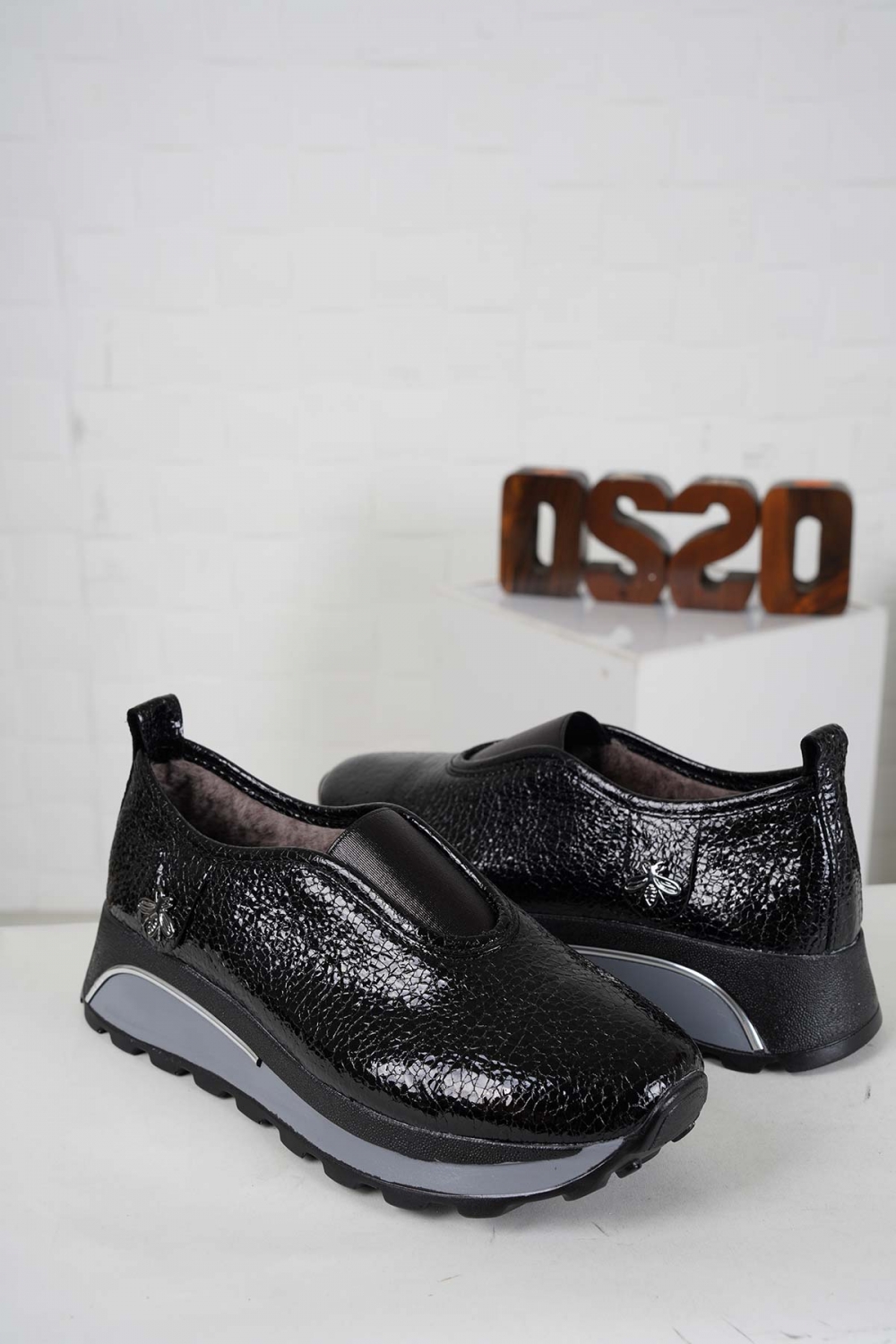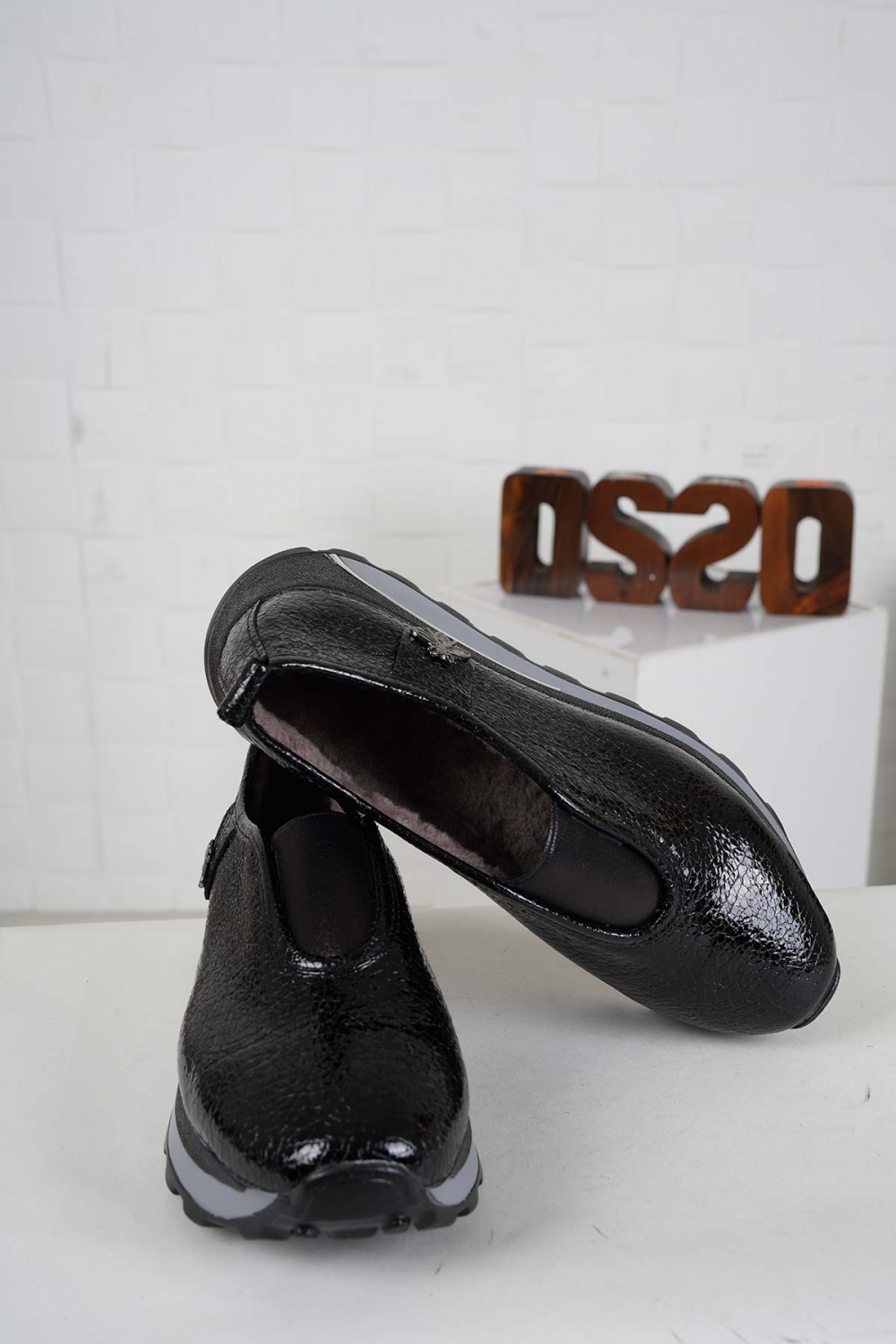 Hakiki Deri Kürklü Siyah Kırık Rugan Kadın Casual Ayakkabı 242176101