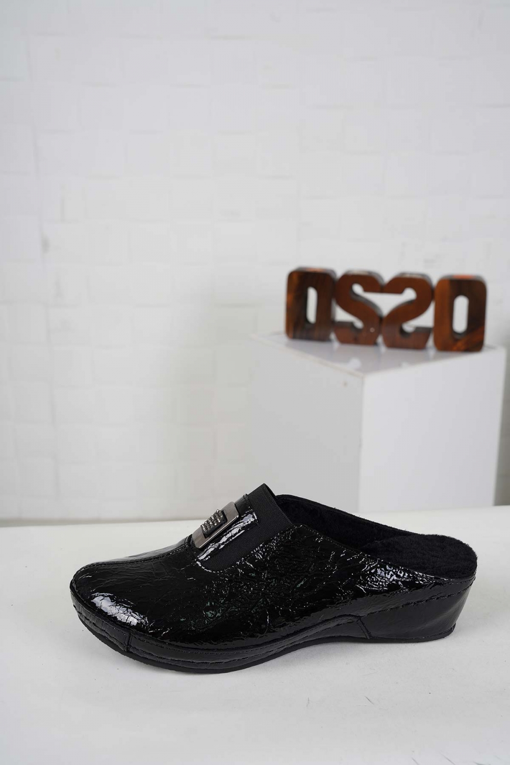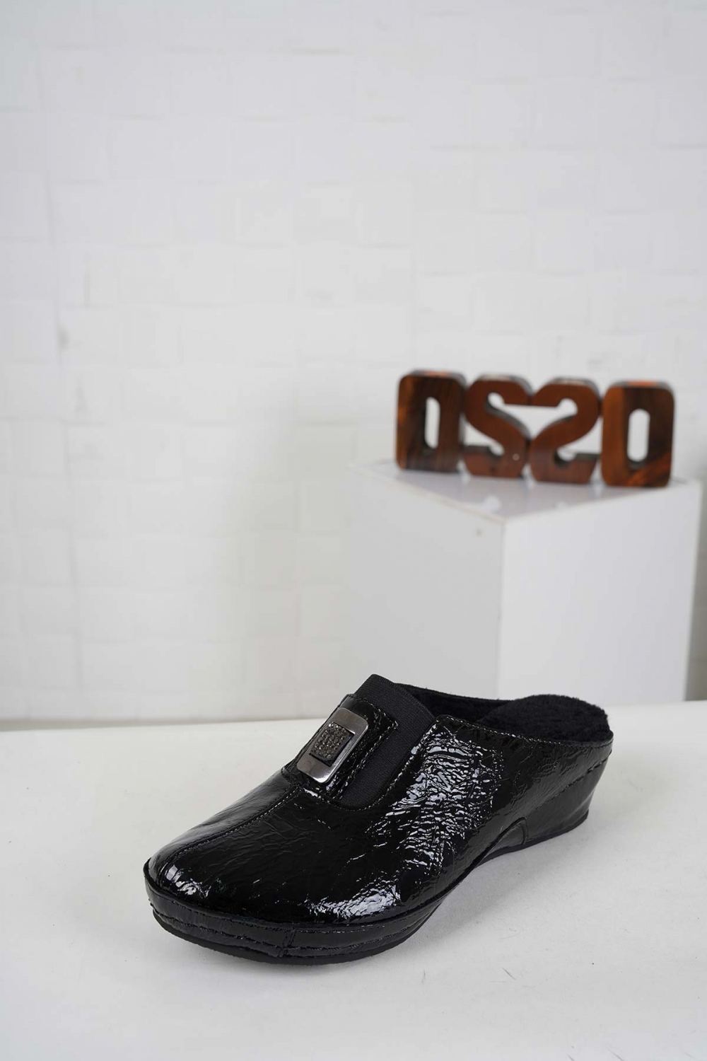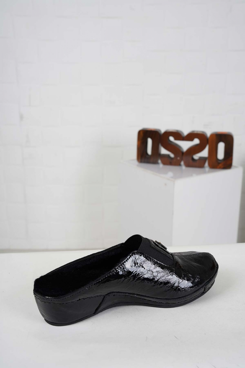 Hakiki Deri Kürklü Siyah Kırışık Rugan Kadın Comfort Sabo 242177705