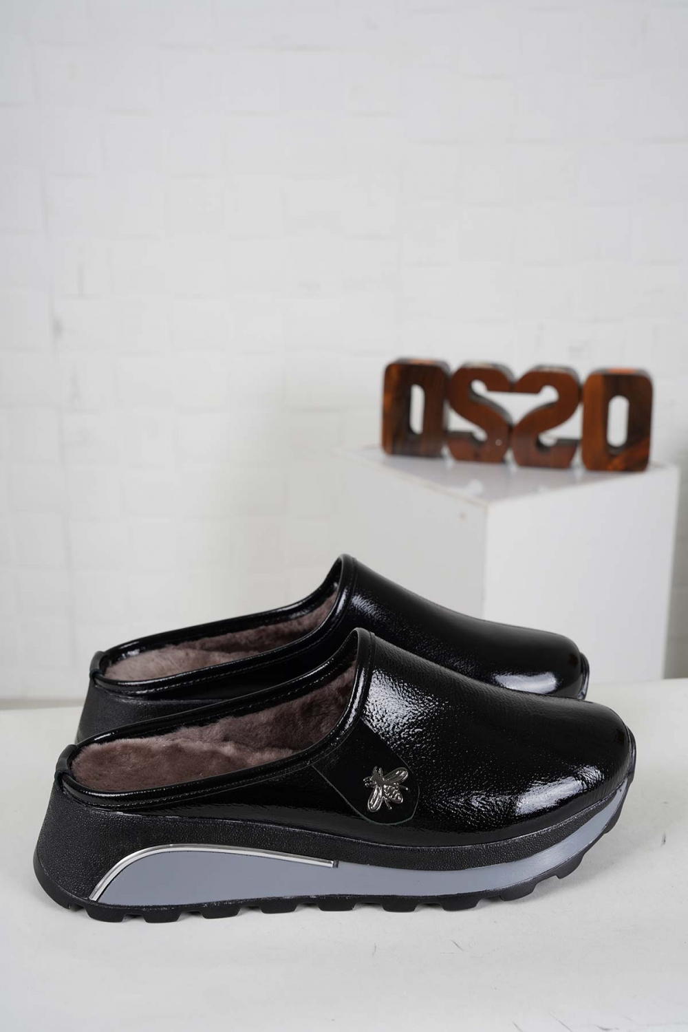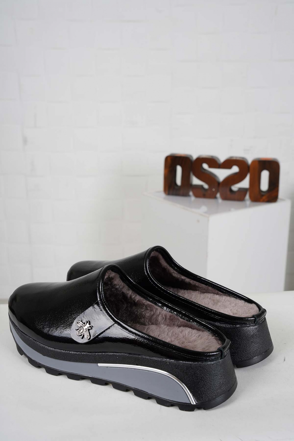 Hakiki Deri Kürklü Siyah Rugan Kadın Casual Sabo 242176701