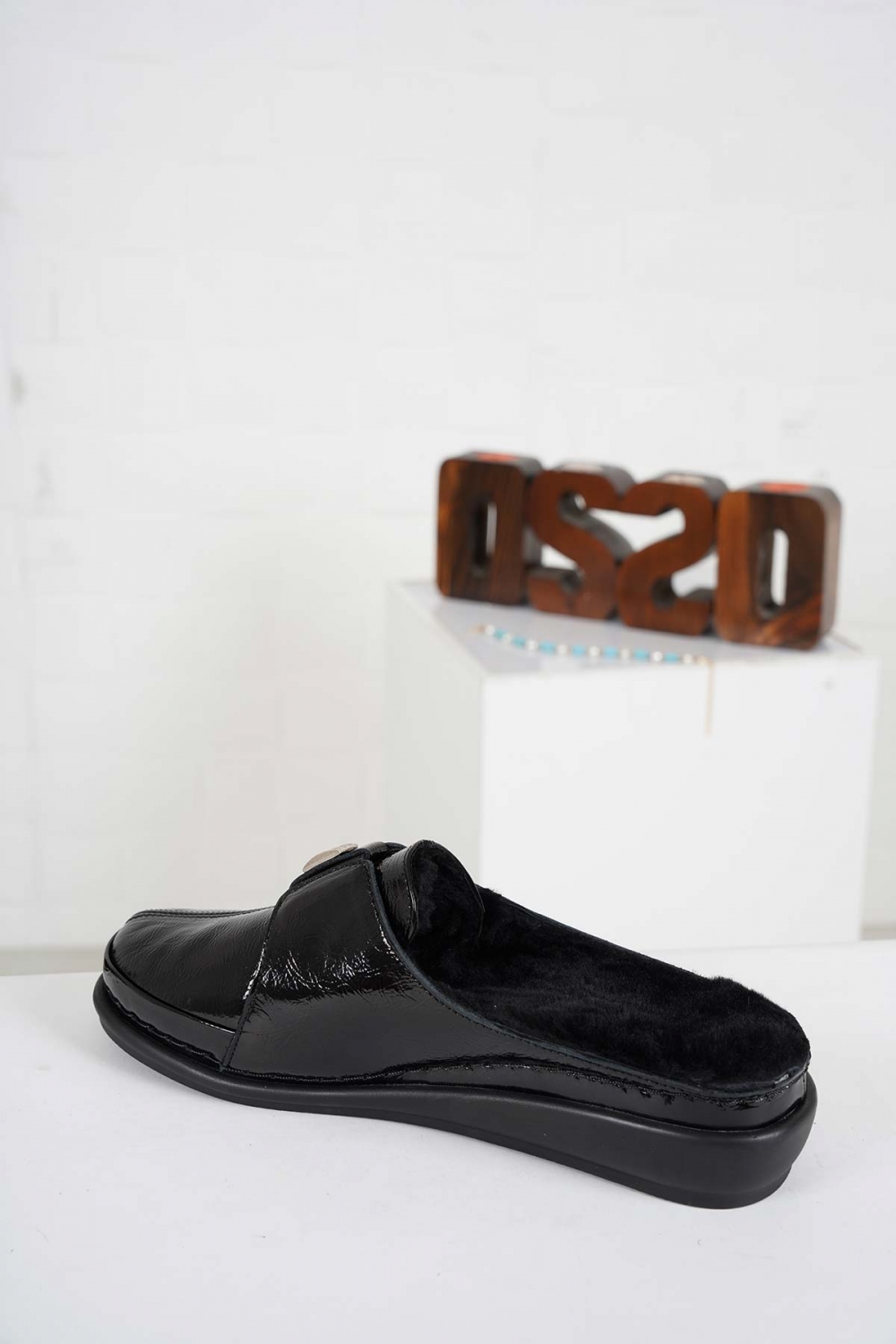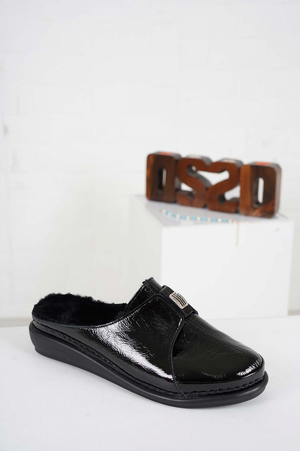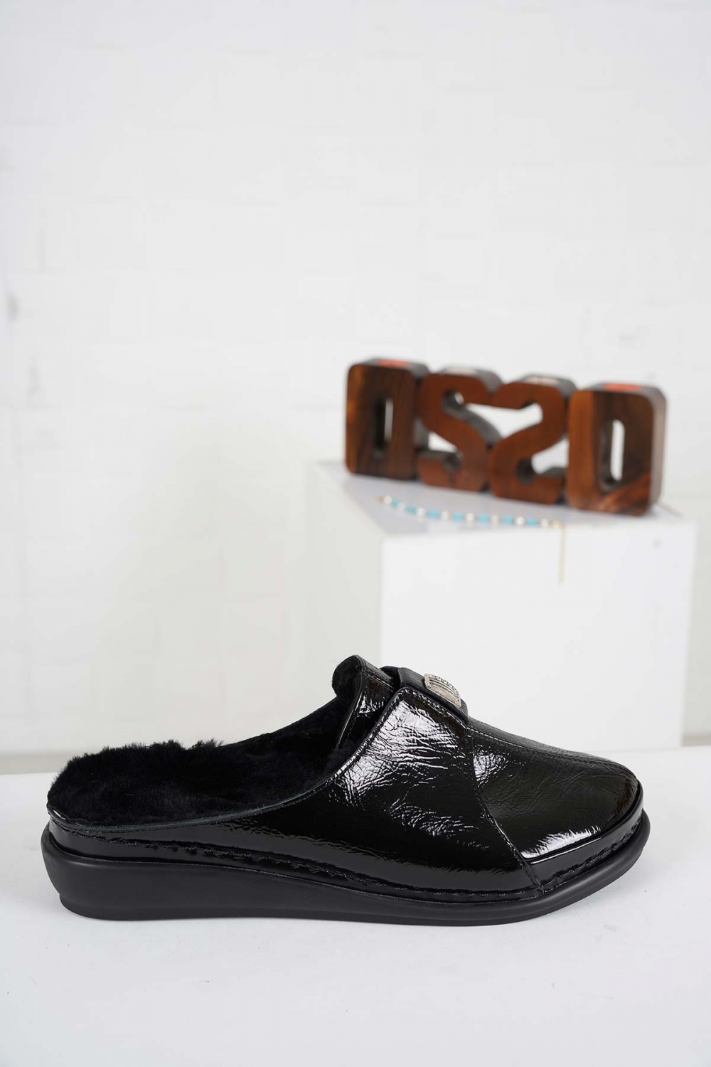 Hakiki Deri Kürklü Siyah Rugan Kadın Comfort Sabo 232177702