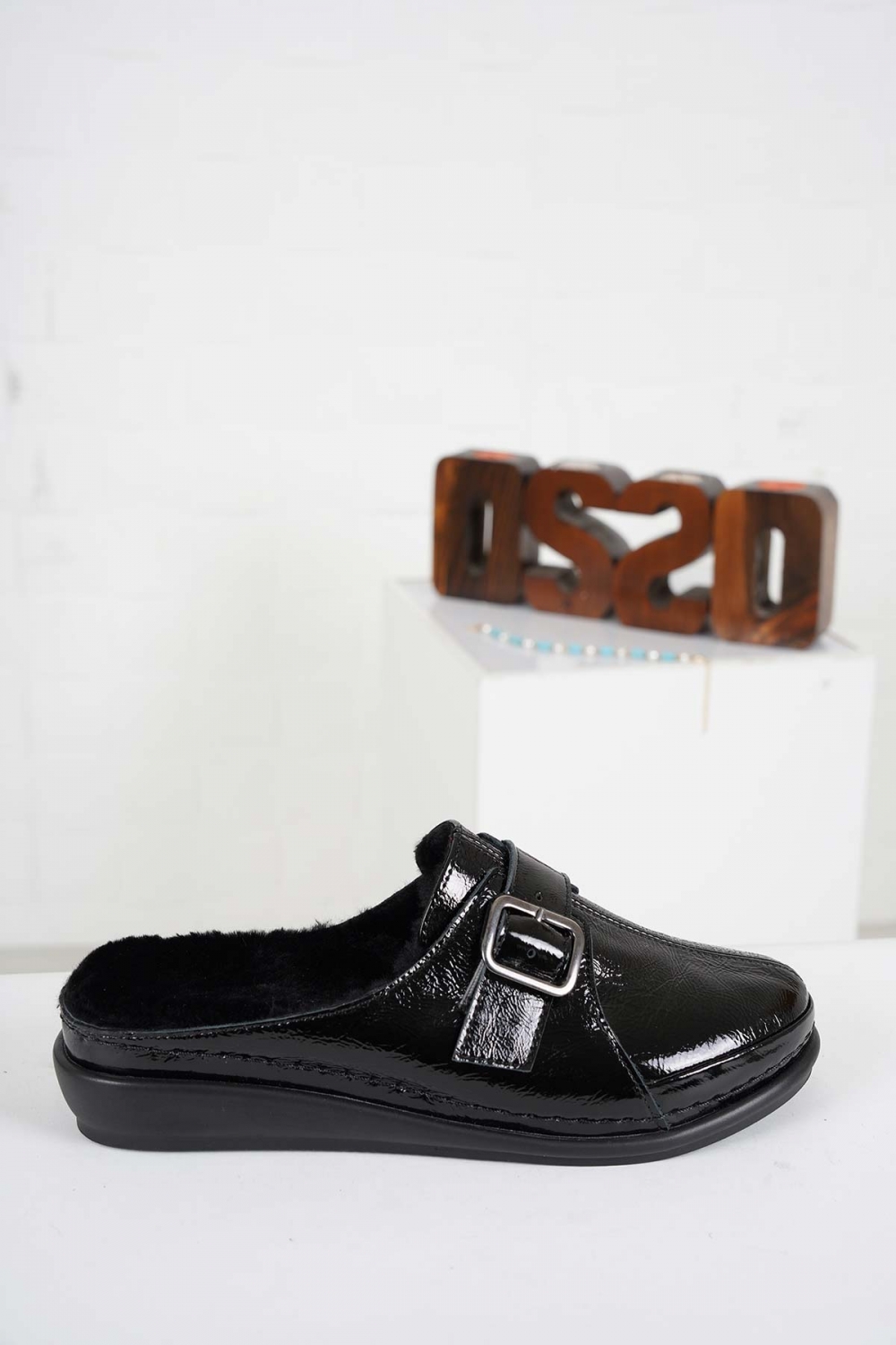 Hakiki Deri Kürklü Siyah Rugan Kadın Comfort Sabo 232177706