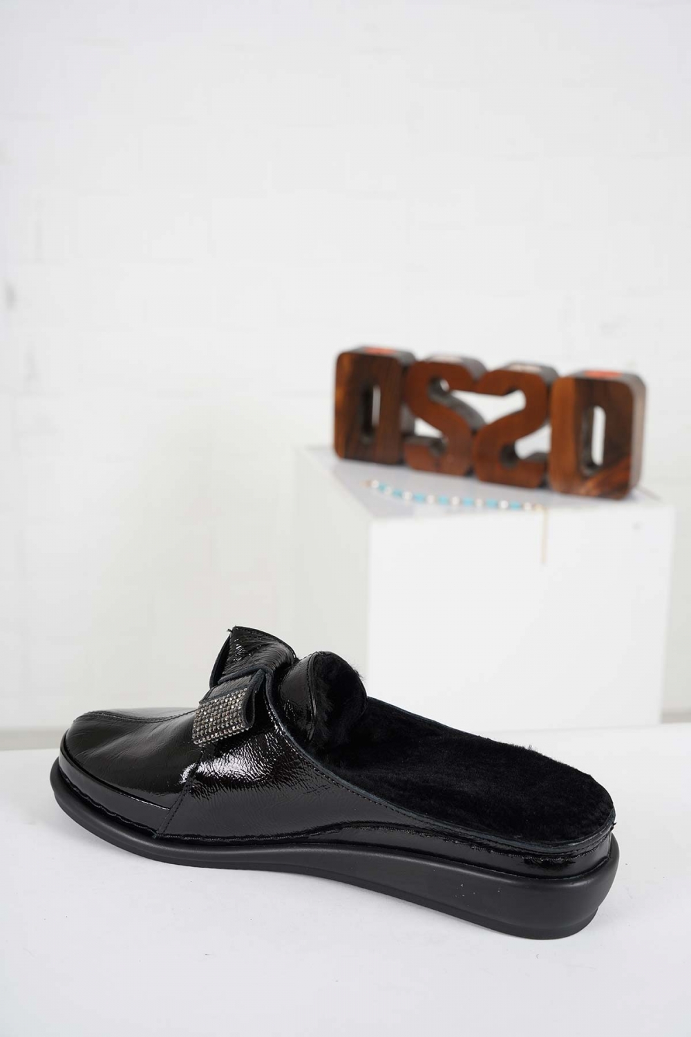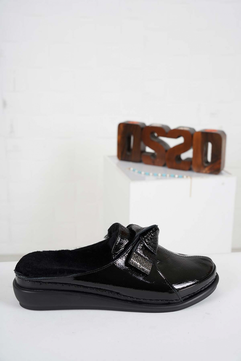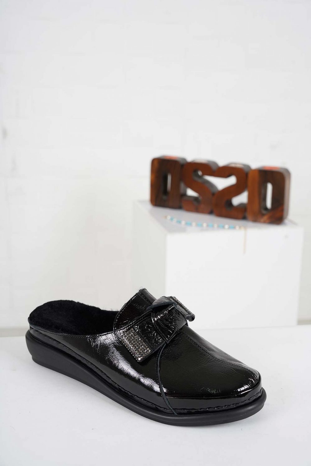 Hakiki Deri Kürklü Siyah Rugan Kadın Comfort Sabo 232177708