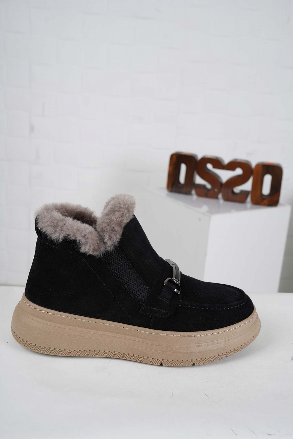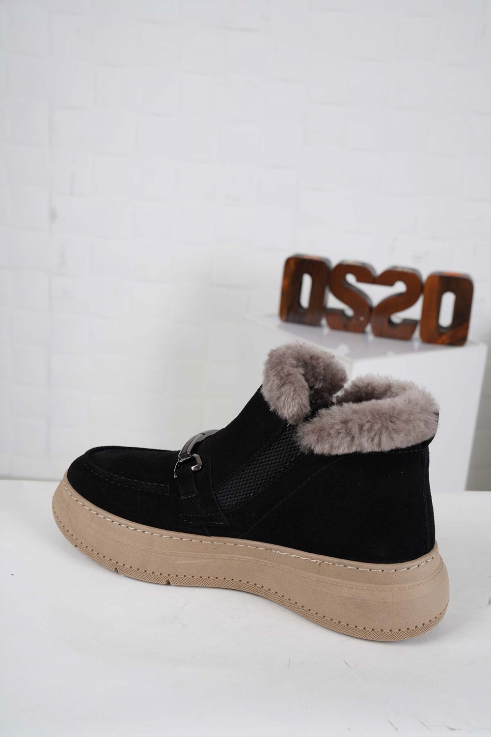 Hakiki Deri Kürklü Siyah Süet Kadın Kısa Bot 242225206