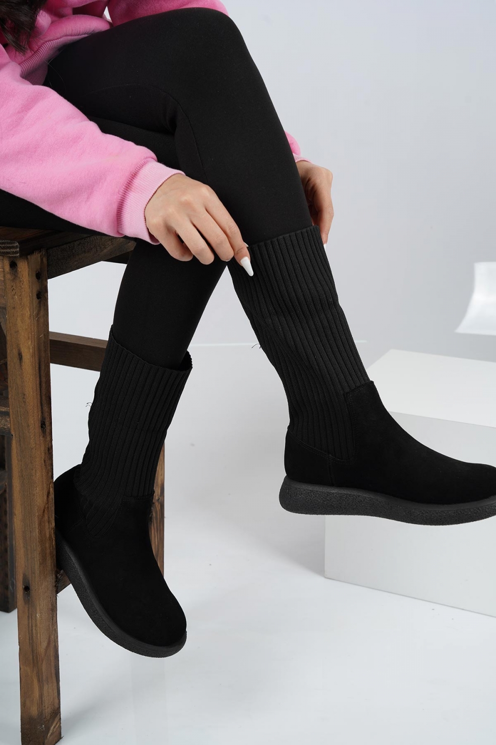 Hakiki Deri Kürklü Siyah Süet Kadın Spor Bot 222135210