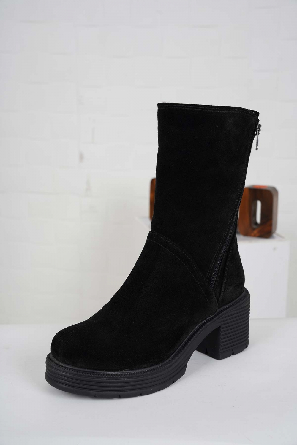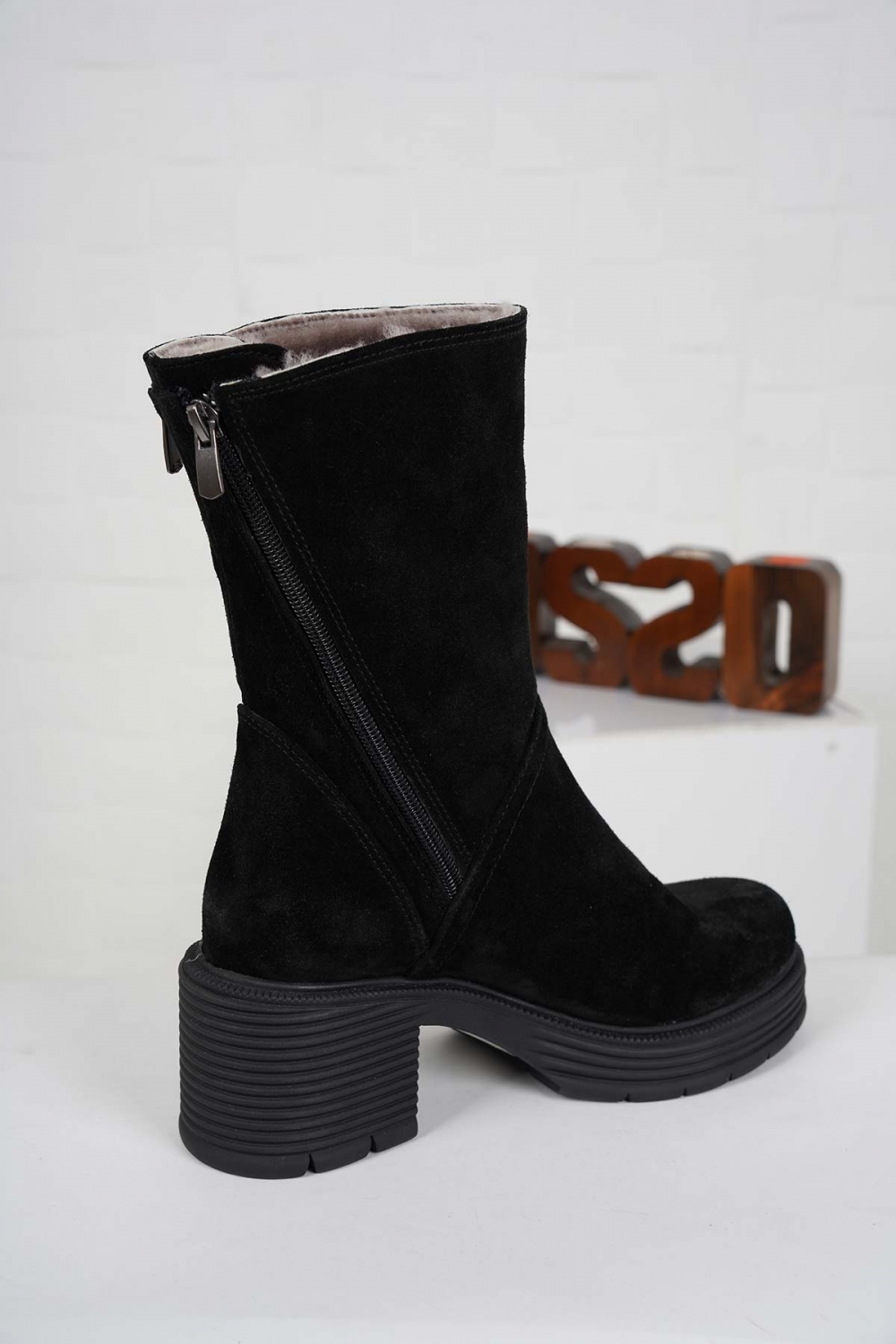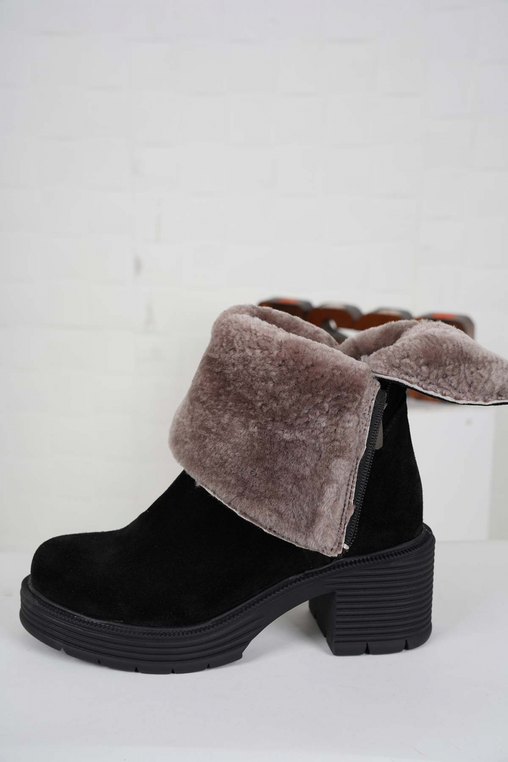 Hakiki Deri Kürklü Siyah Süet Kadın Topuklu Bot 232186200