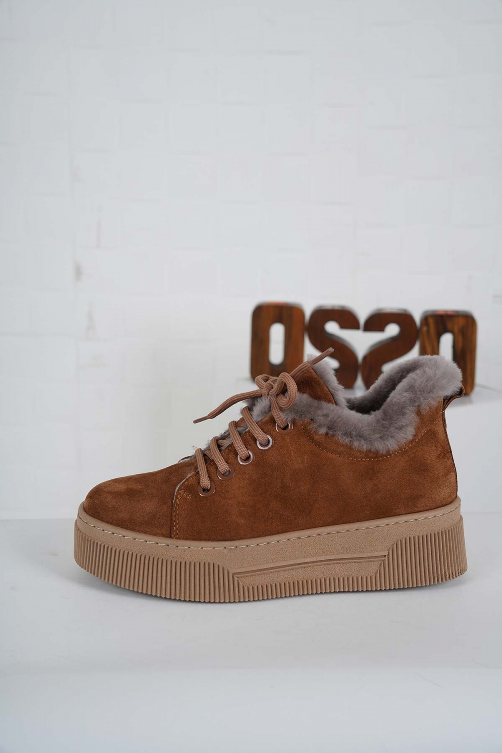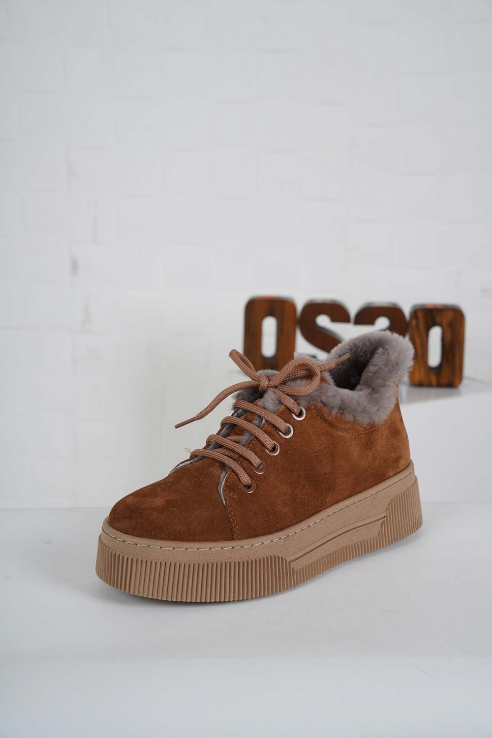 Hakiki Deri Kürklü Taba Süet Kadın Sneaker Bot 232225200