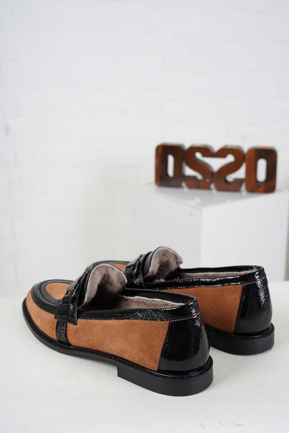 Hakiki Deri Kürklü Taba Süet-Siyah Rugan Kadın Casual Ayakkabı 242127118