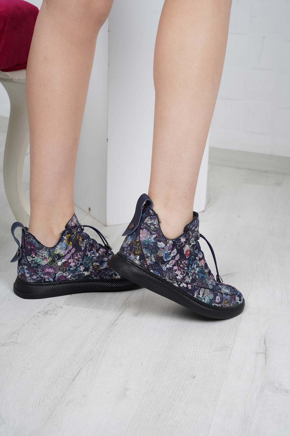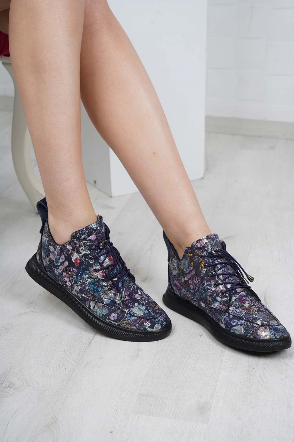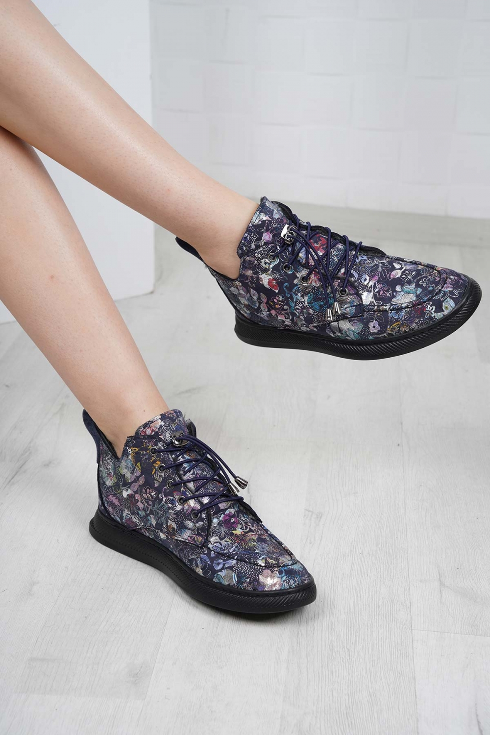 Hakiki Deri Çiçek Baskılı Kadın Casual Bot 252186208