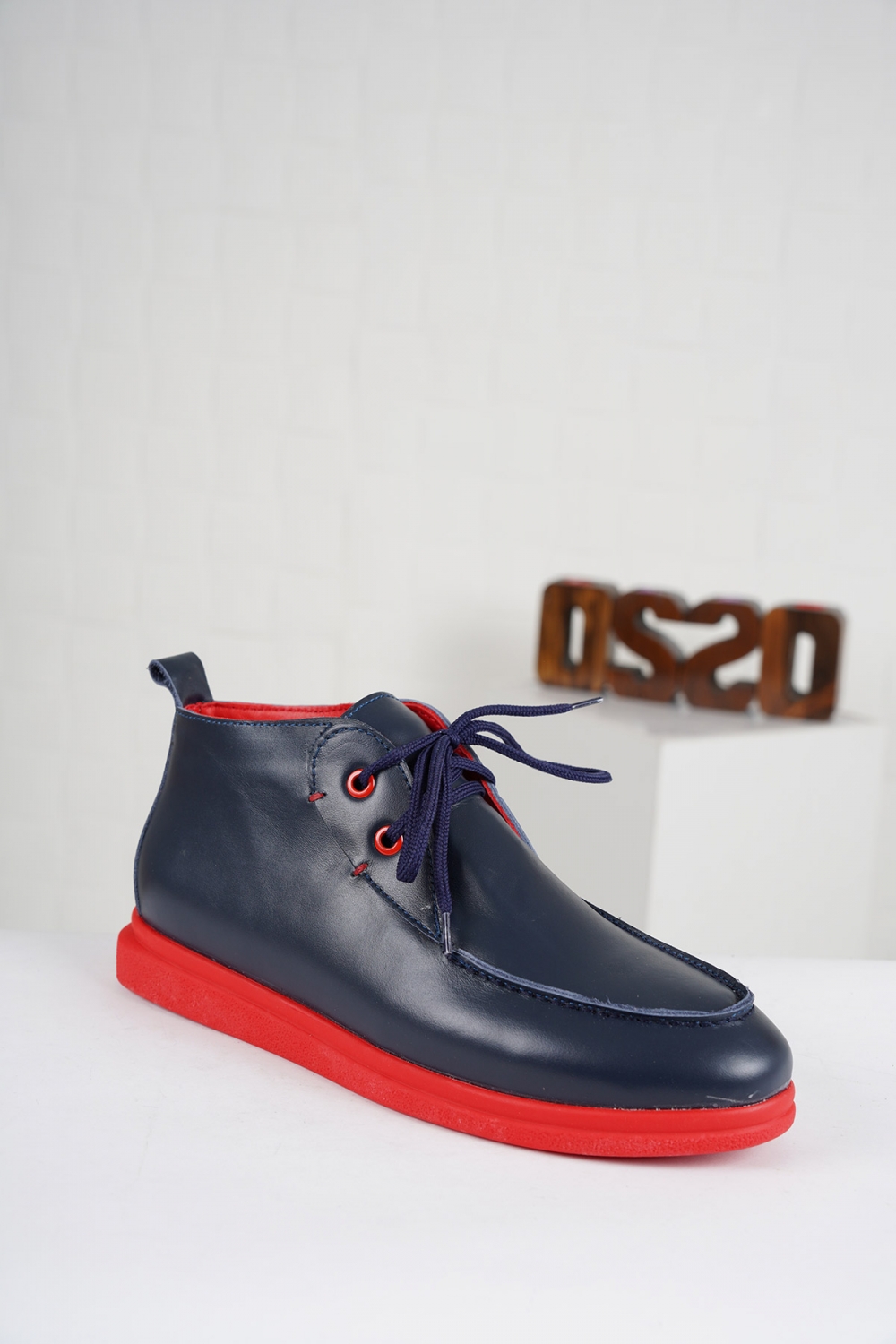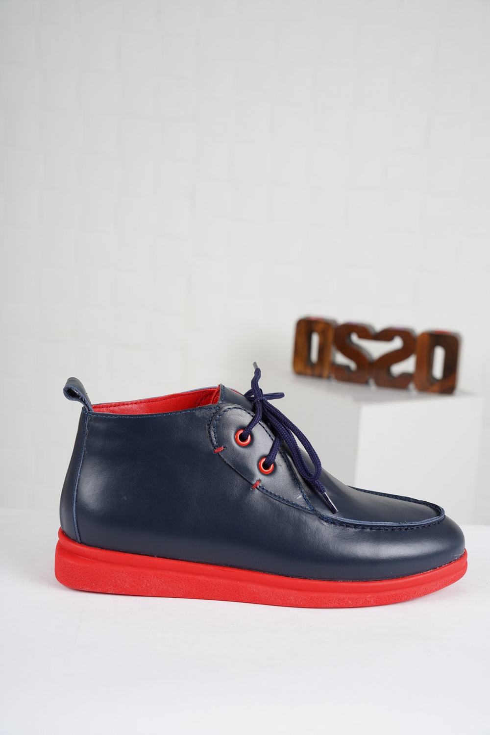 Hakiki Deri Lacivert Kadın Kısa Bot 212209204