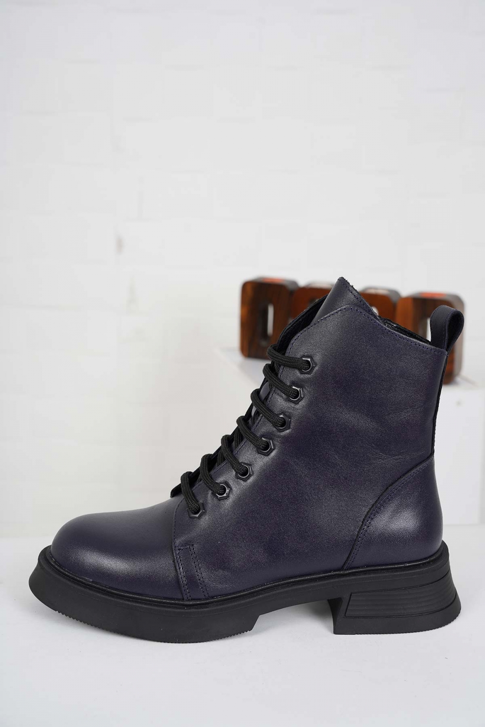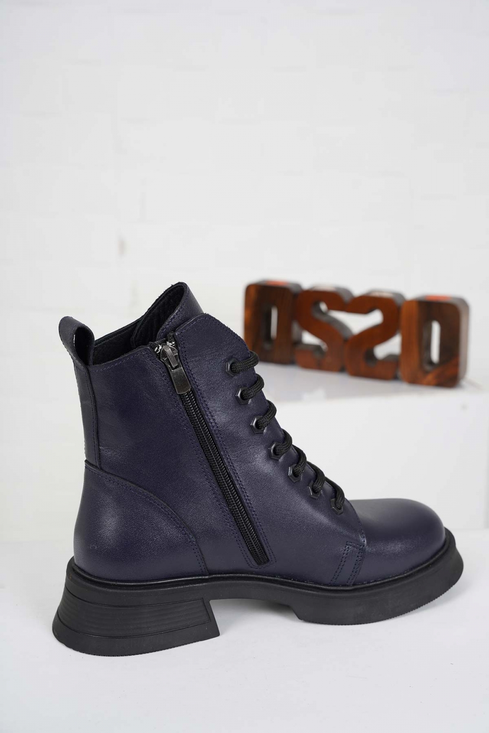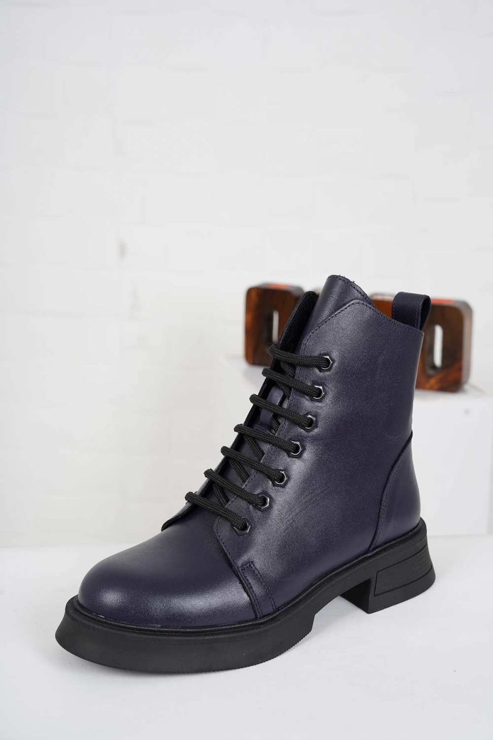 Hakiki Deri Lacivert Kadın Kısa Bot 222172203