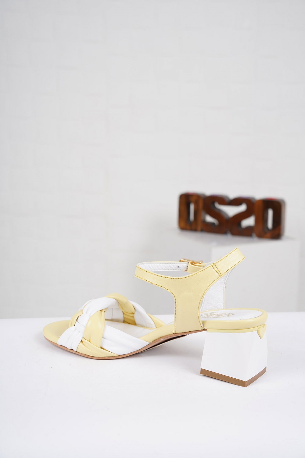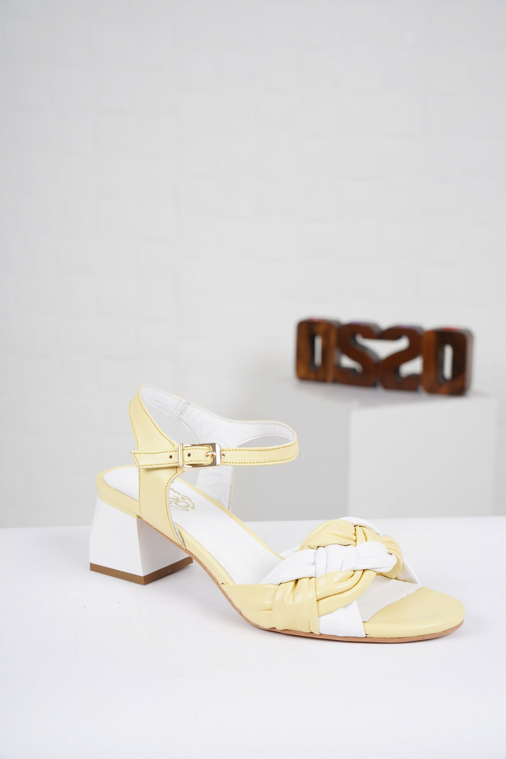 Hakiki Deri Limon Sarı-Beyaz Kadın Topuklu Sandalet 221127524