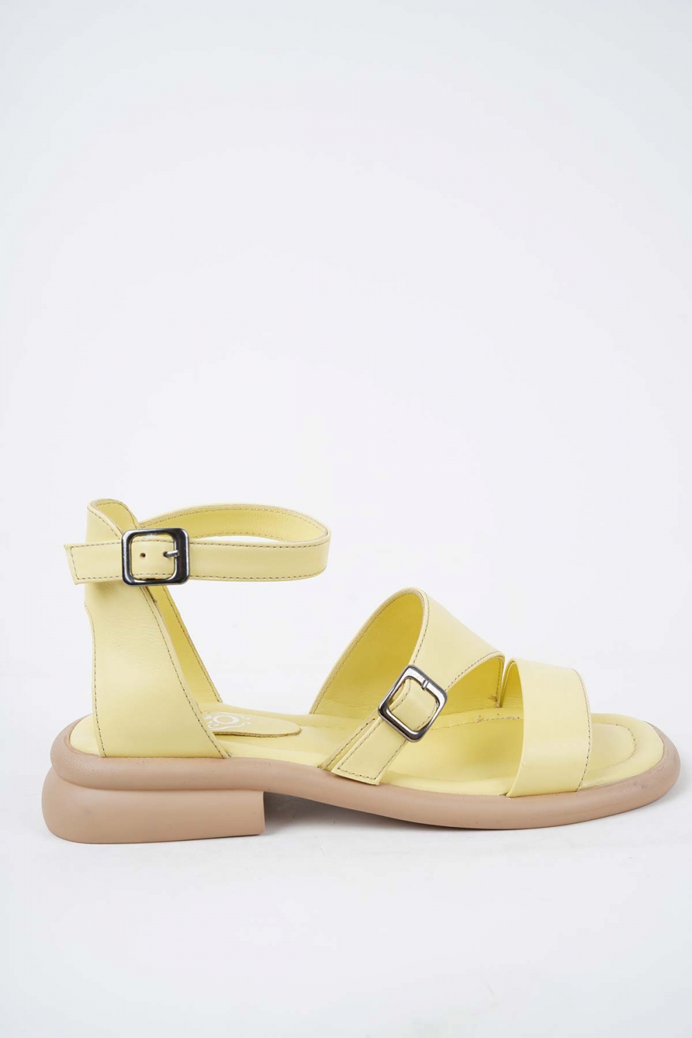 Hakiki Deri Limon Sarı Kadın Topuklu Sandalet 251173504