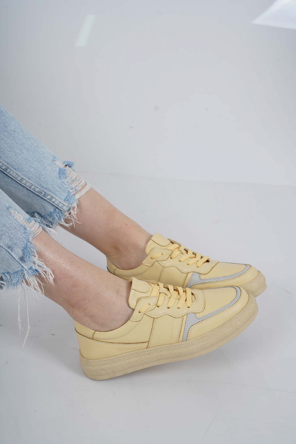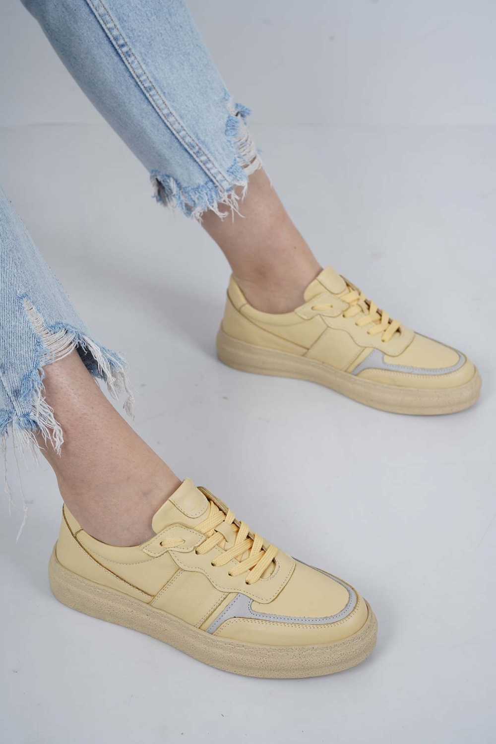Hakiki Deri Limon Sarısı-Gri Kadın Casual Ayakkabı 231108103