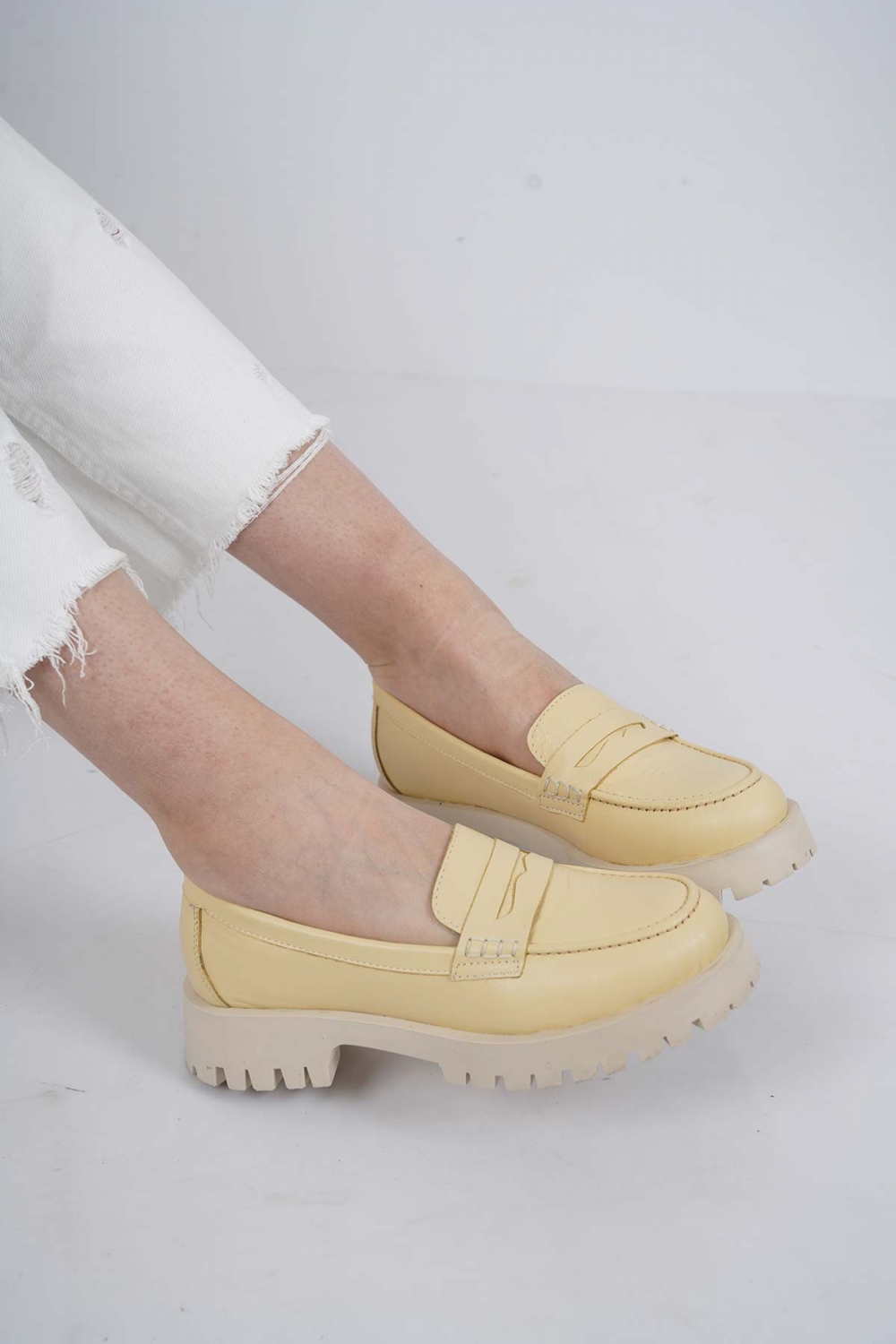 Hakiki Deri Limon Sarısı Kadın Casual Ayakkabı 231108119