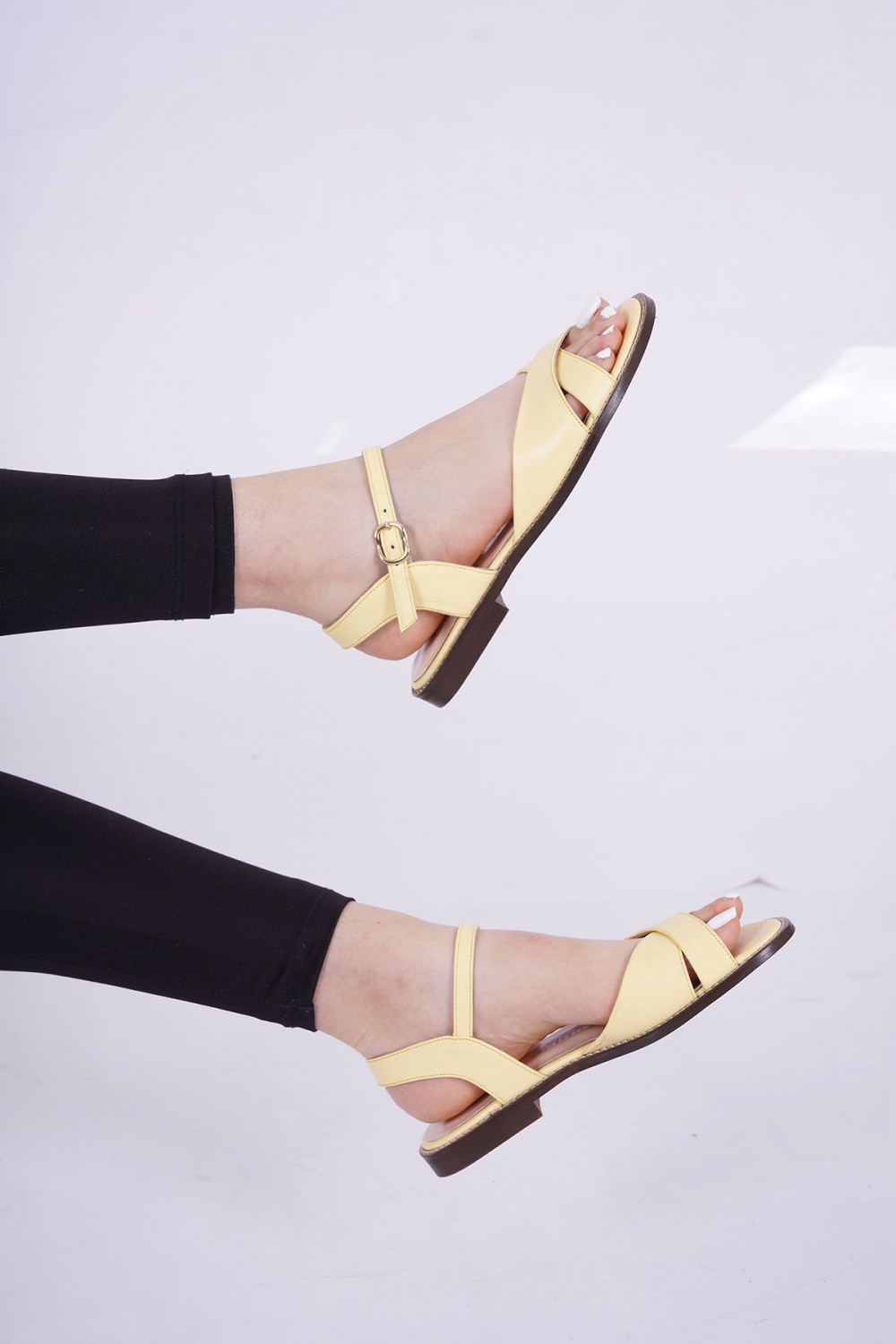 Hakiki Deri Limon Sarısı Kadın Düz Sandalet 211127514