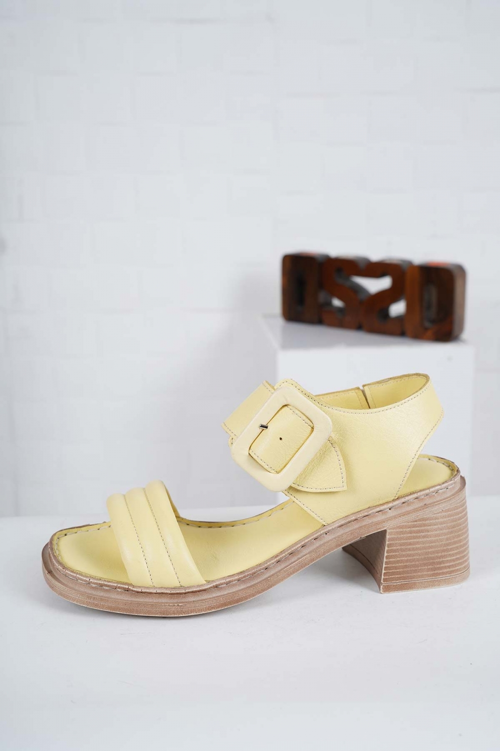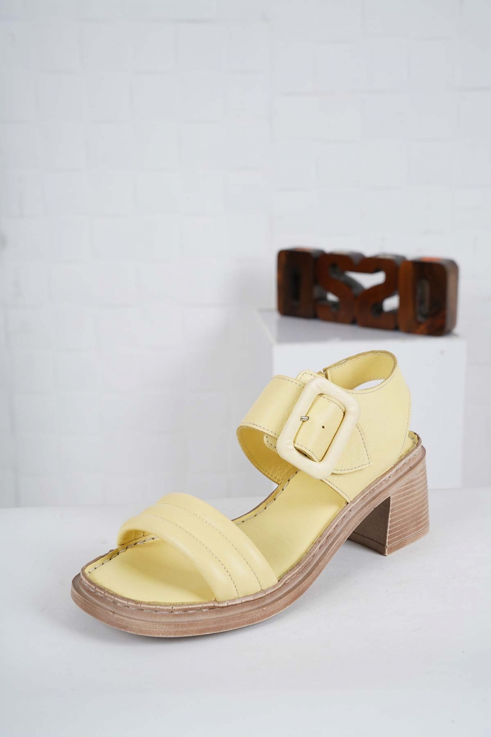 Hakiki Deri Limon Sarısı Kadın Topuklu Sandalet 241224504