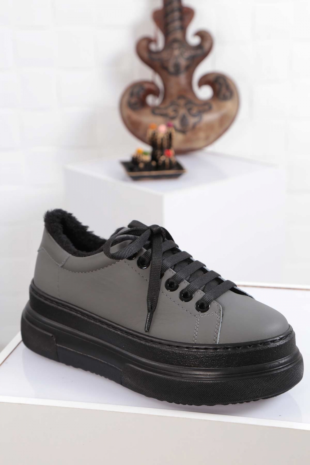 Hakiki Deri Mat Füme Kadın Sneaker Ayakkabı 212225103