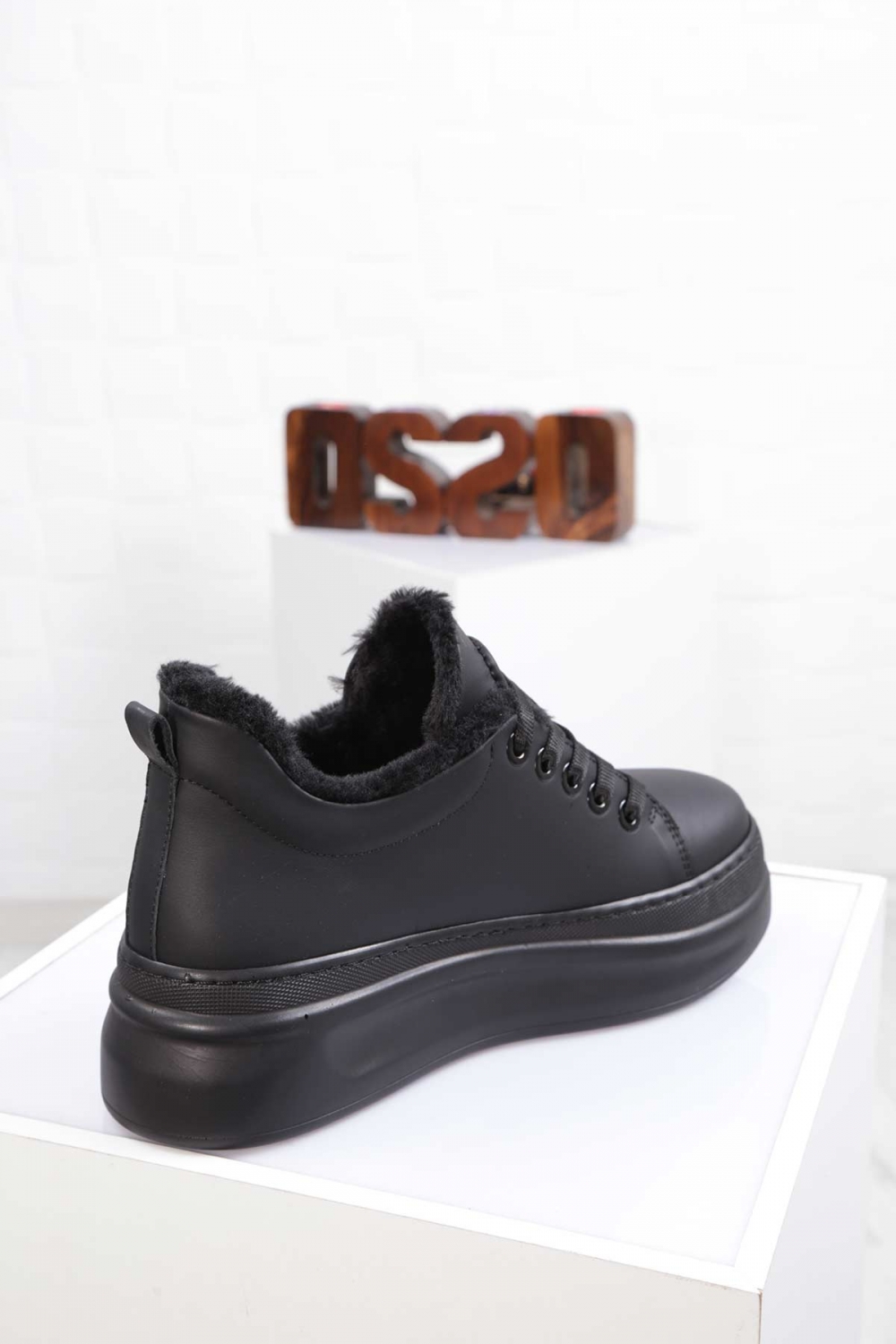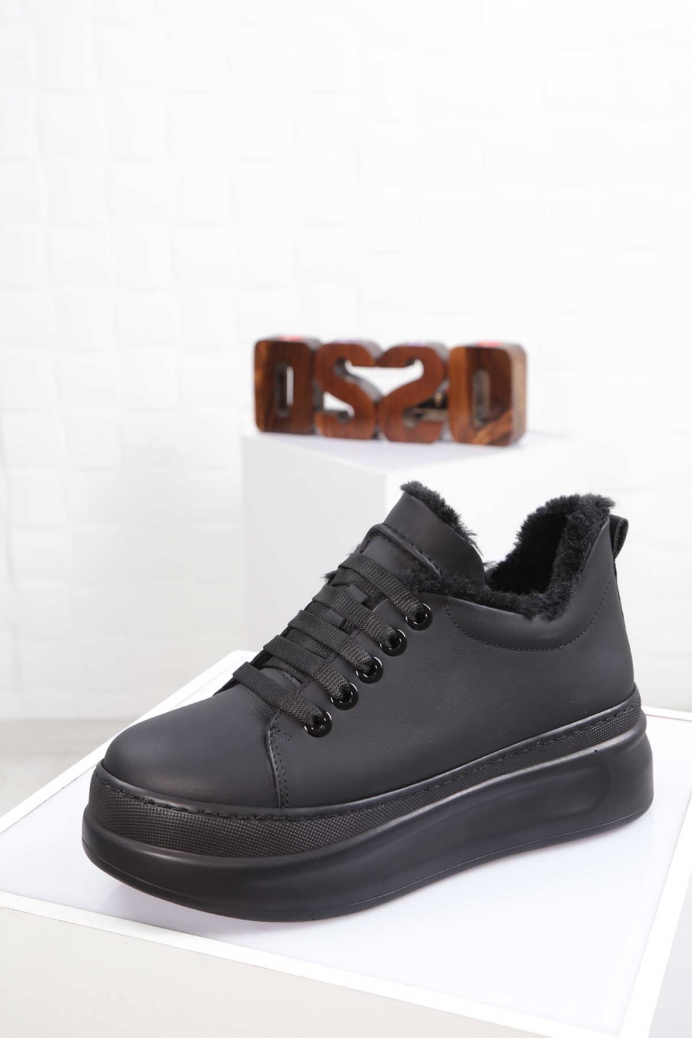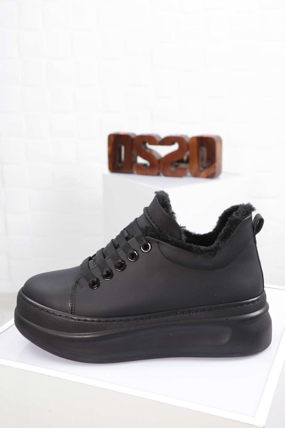 Hakiki Deri Mat Siyah Kadın Sneaker Ayakkabı 212225108