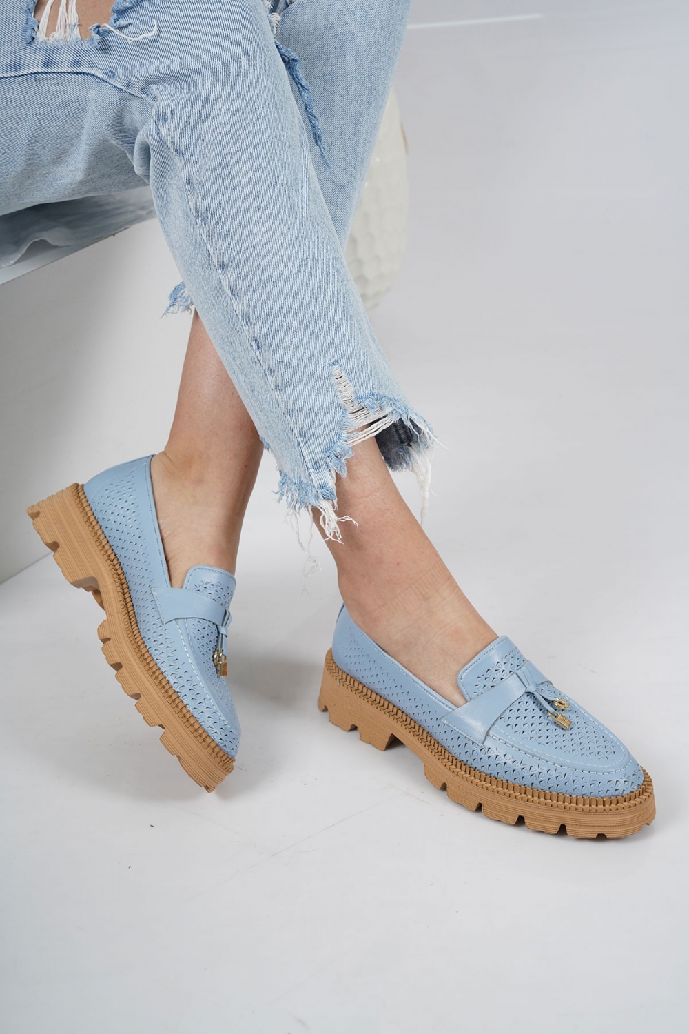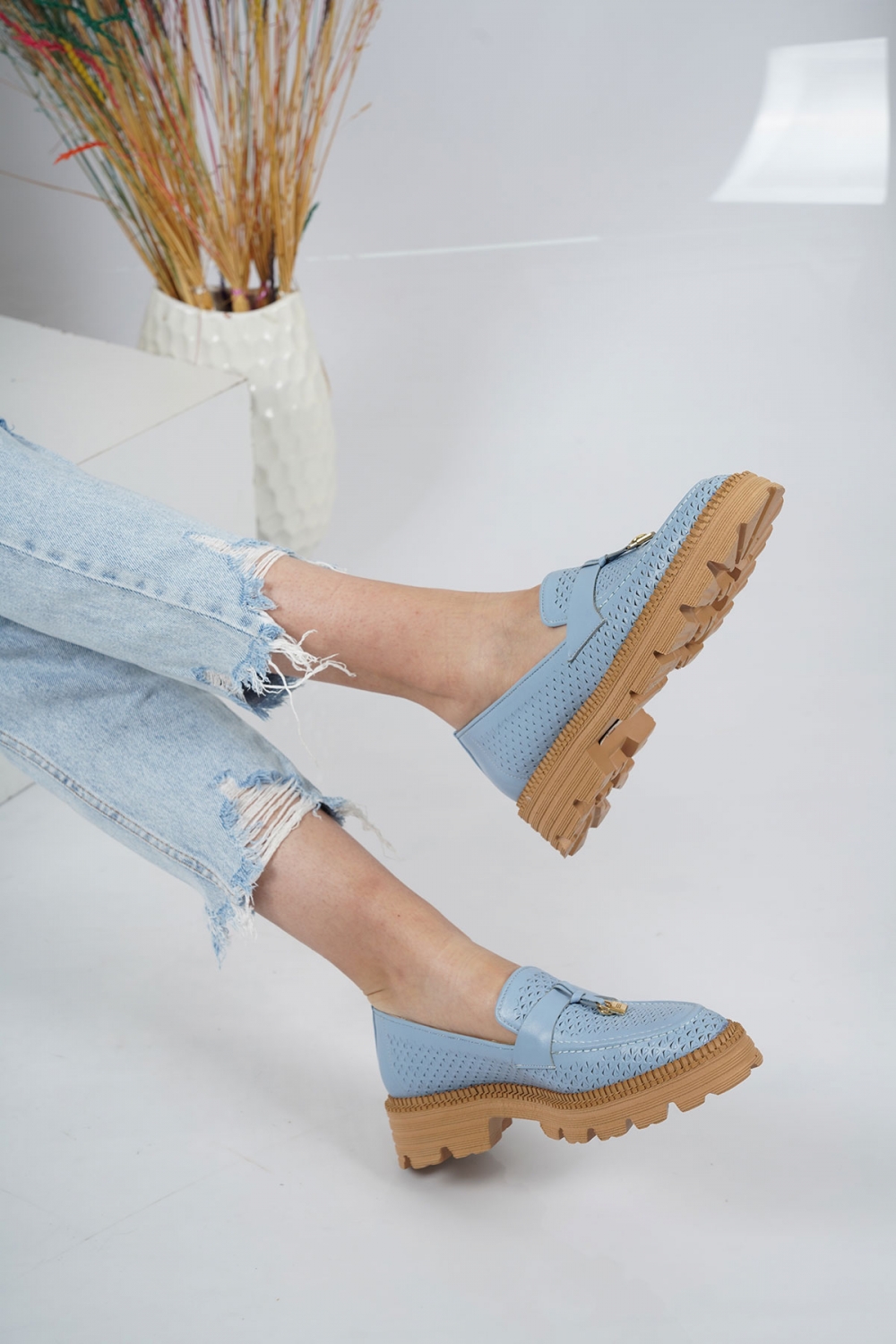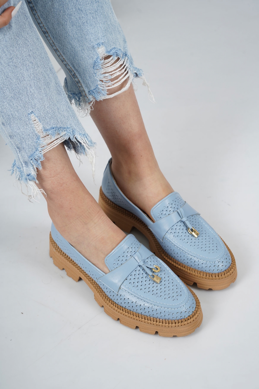 Hakiki Deri Mavi Kadın Casual Ayakkabı 231127108