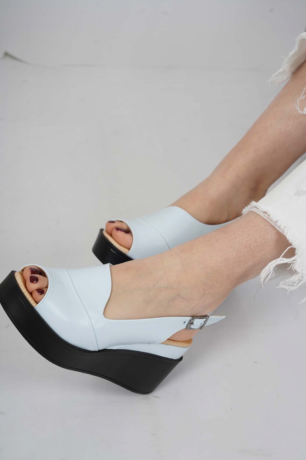 Hakiki Deri Mavi Kadın Dolgu Topuk Sandalet 221229502