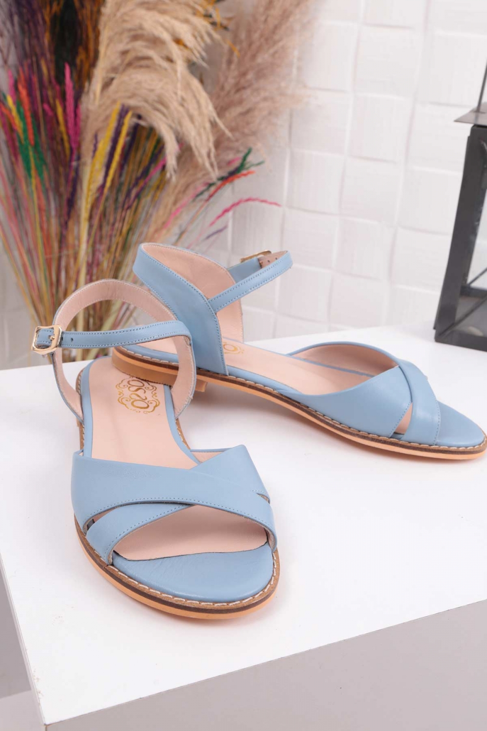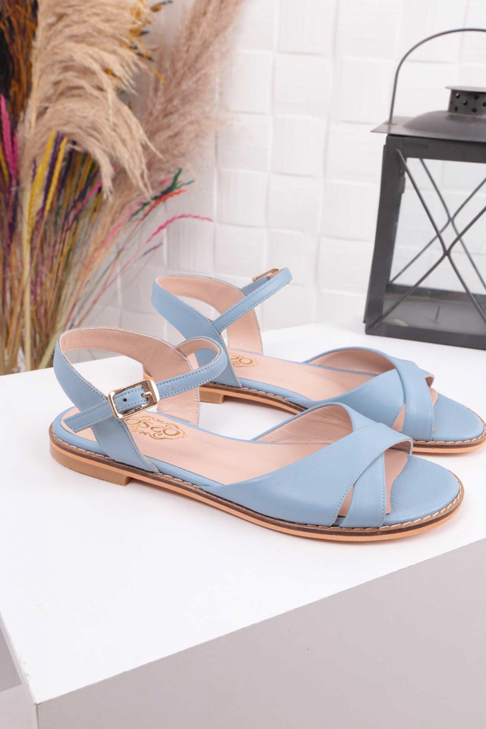 Hakiki Deri Mavi Kadın Düz Sandalet 211127514