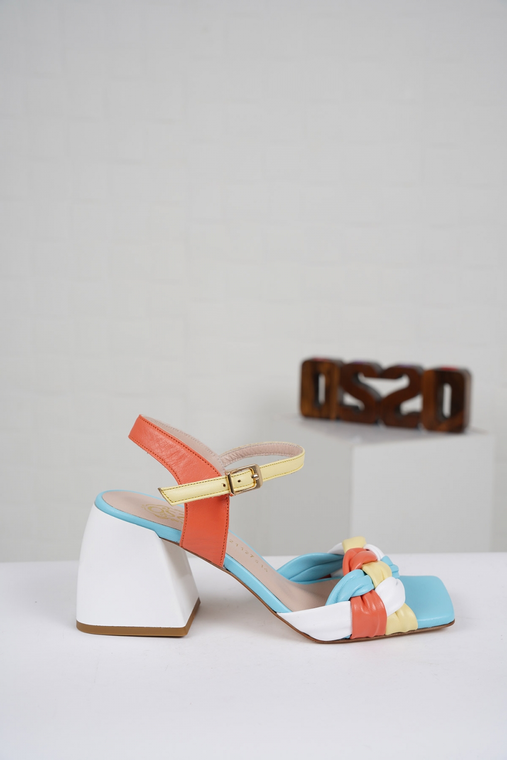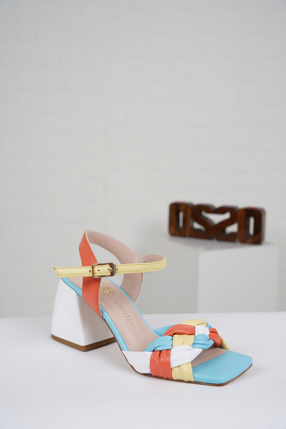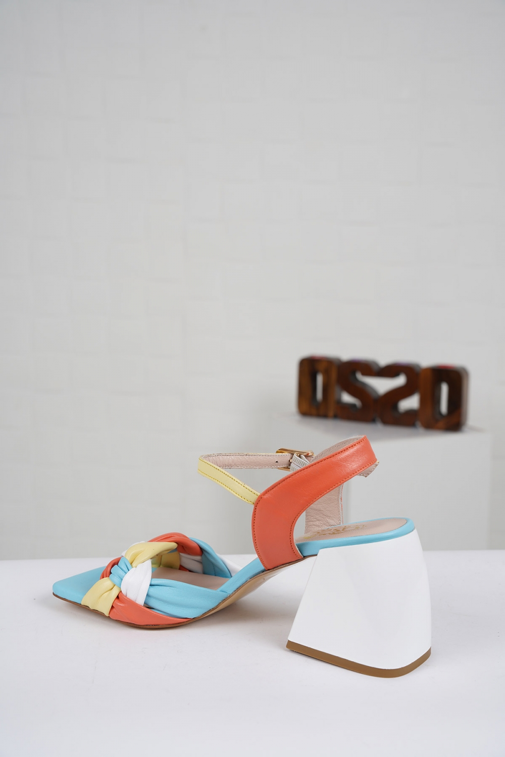 Hakiki Deri Mavi-Sarı-Oranj-Mavi-Beyaz Kadın Topuklu Sandalet 221127514