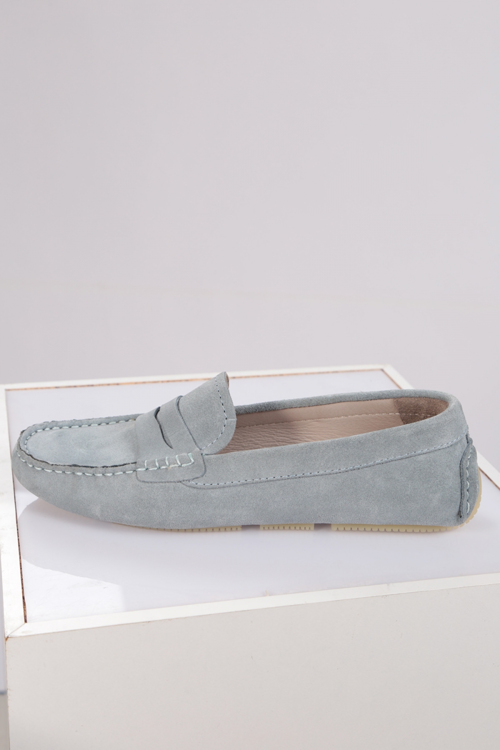 Hakiki Deri Mavi Süet Kadın Makosen Ayakkabı 221209106