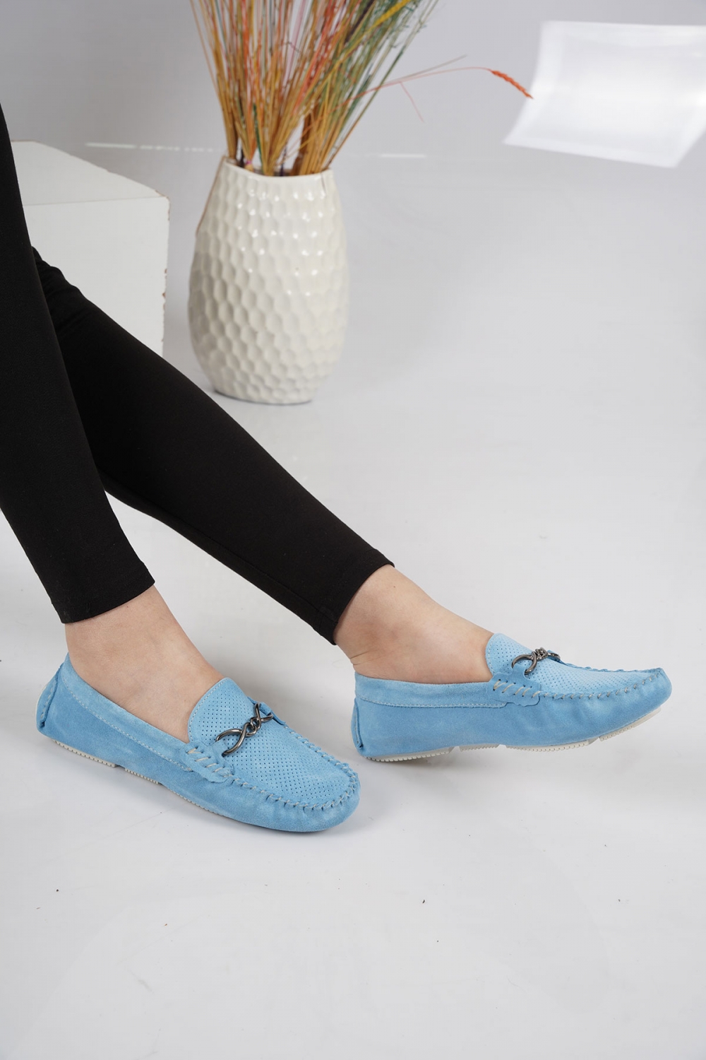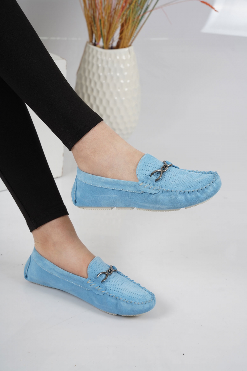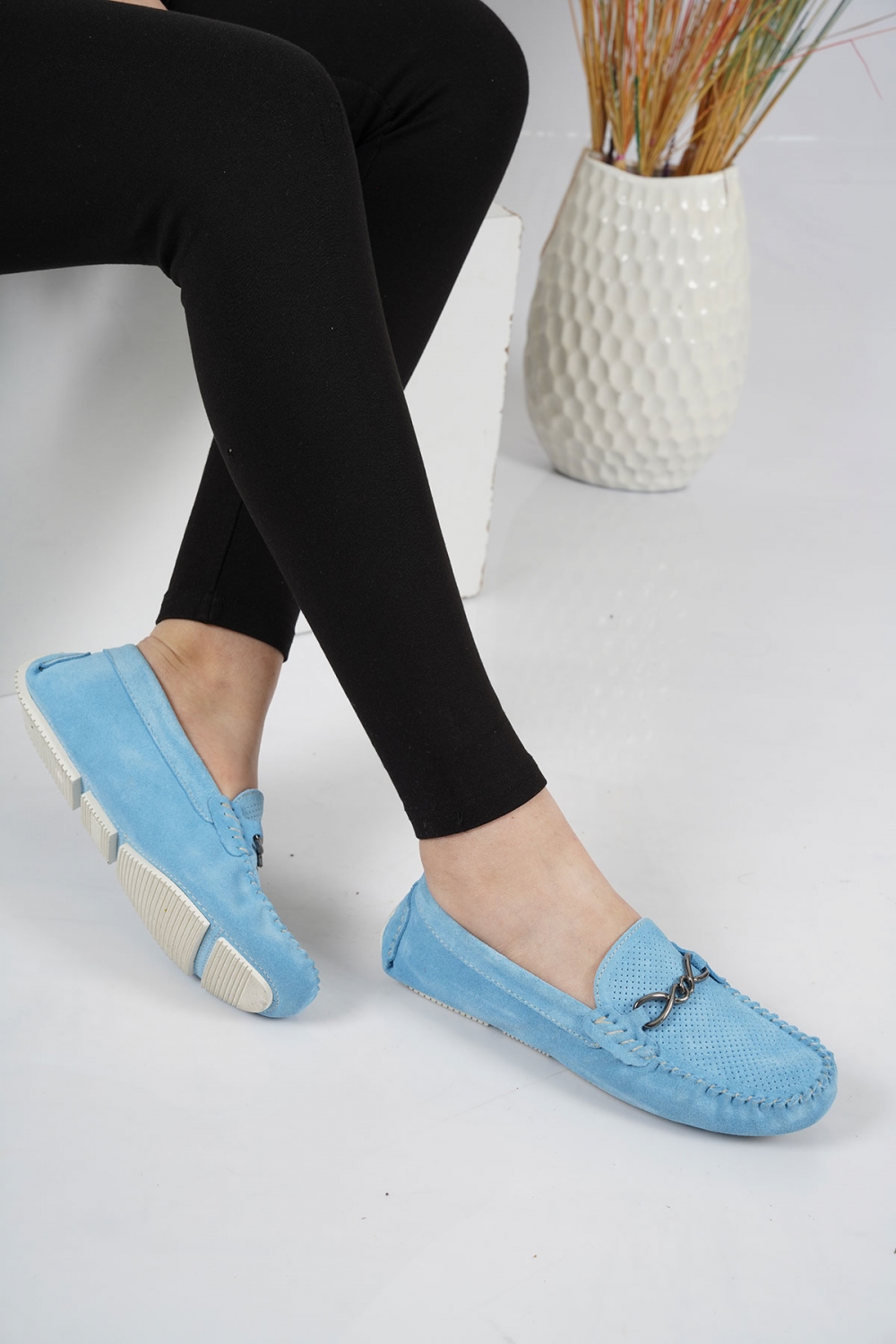 Hakiki Deri Mavi Süet Kadın Makosen Ayakkabı 221209114
