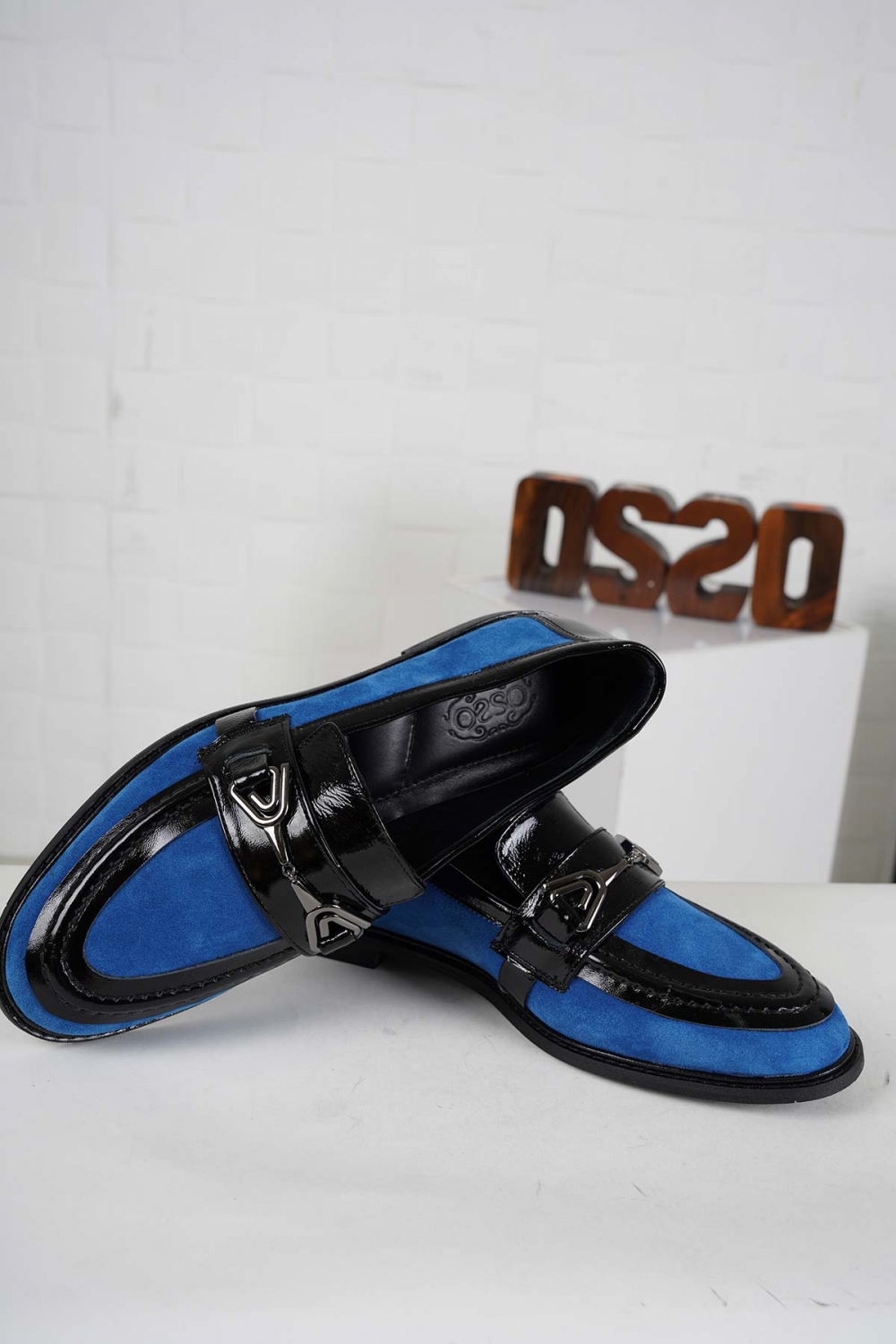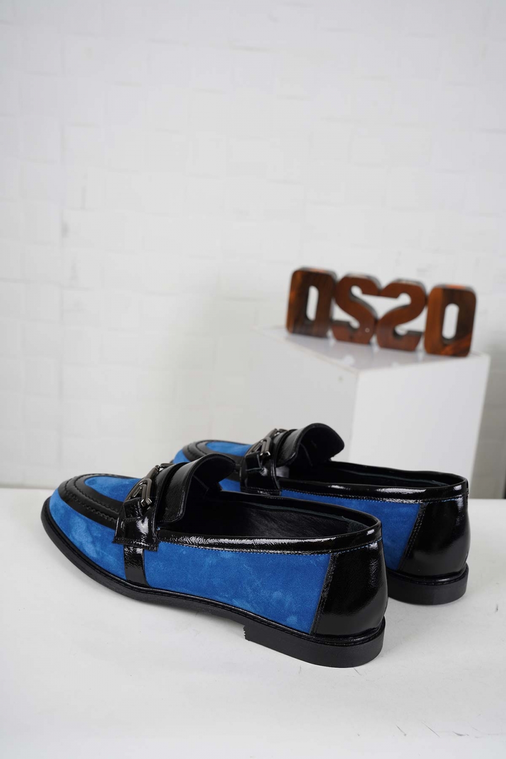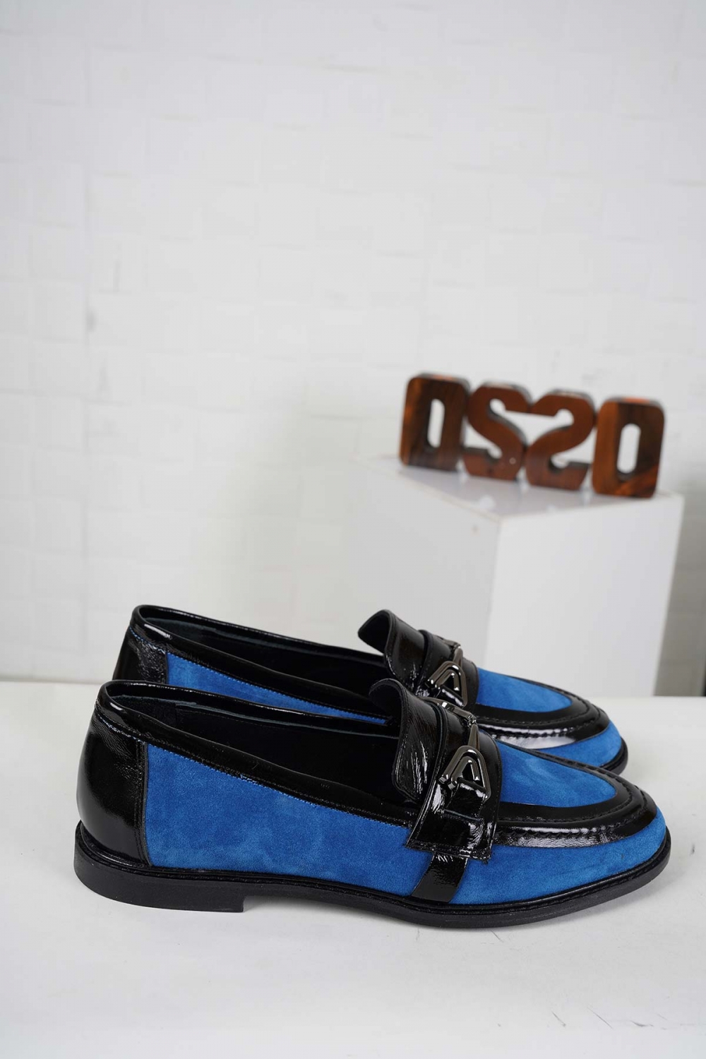 Hakiki Deri Mavi Süet-Siyah Rugan Kadın Casual Ayakkabı 242127108