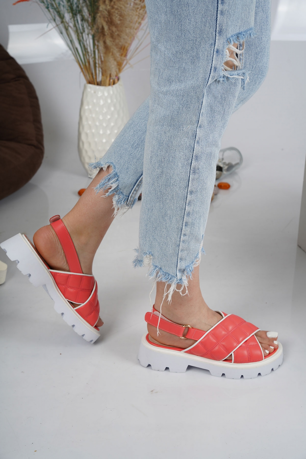Hakiki Deri Mercan-Beyaz Kadın Casual Terlik 231127503