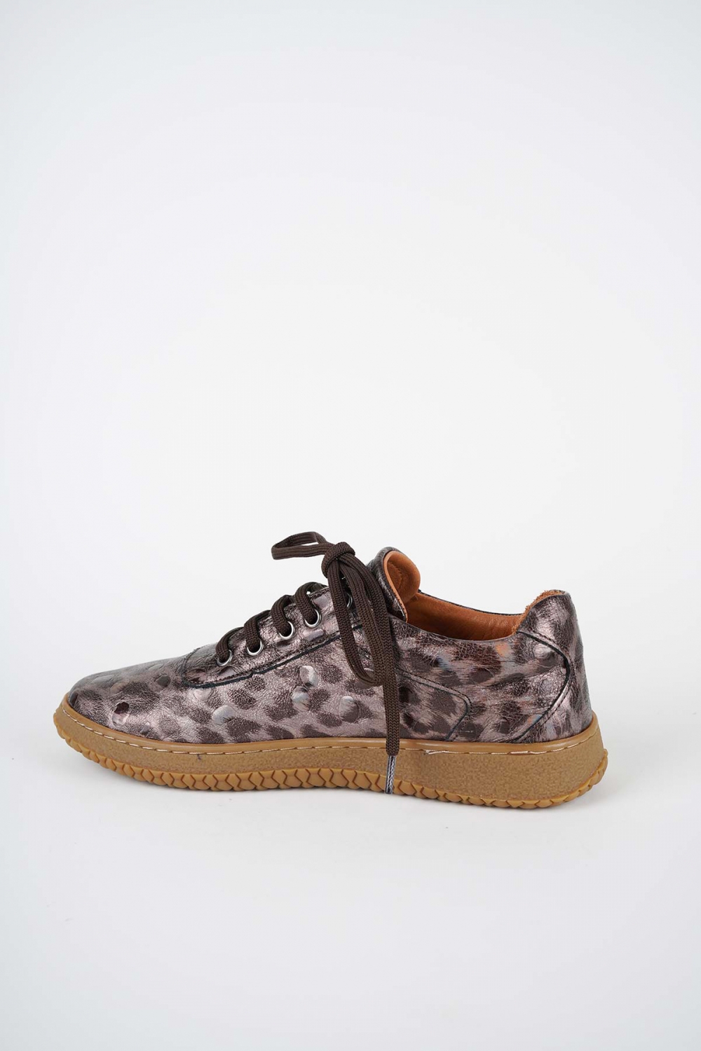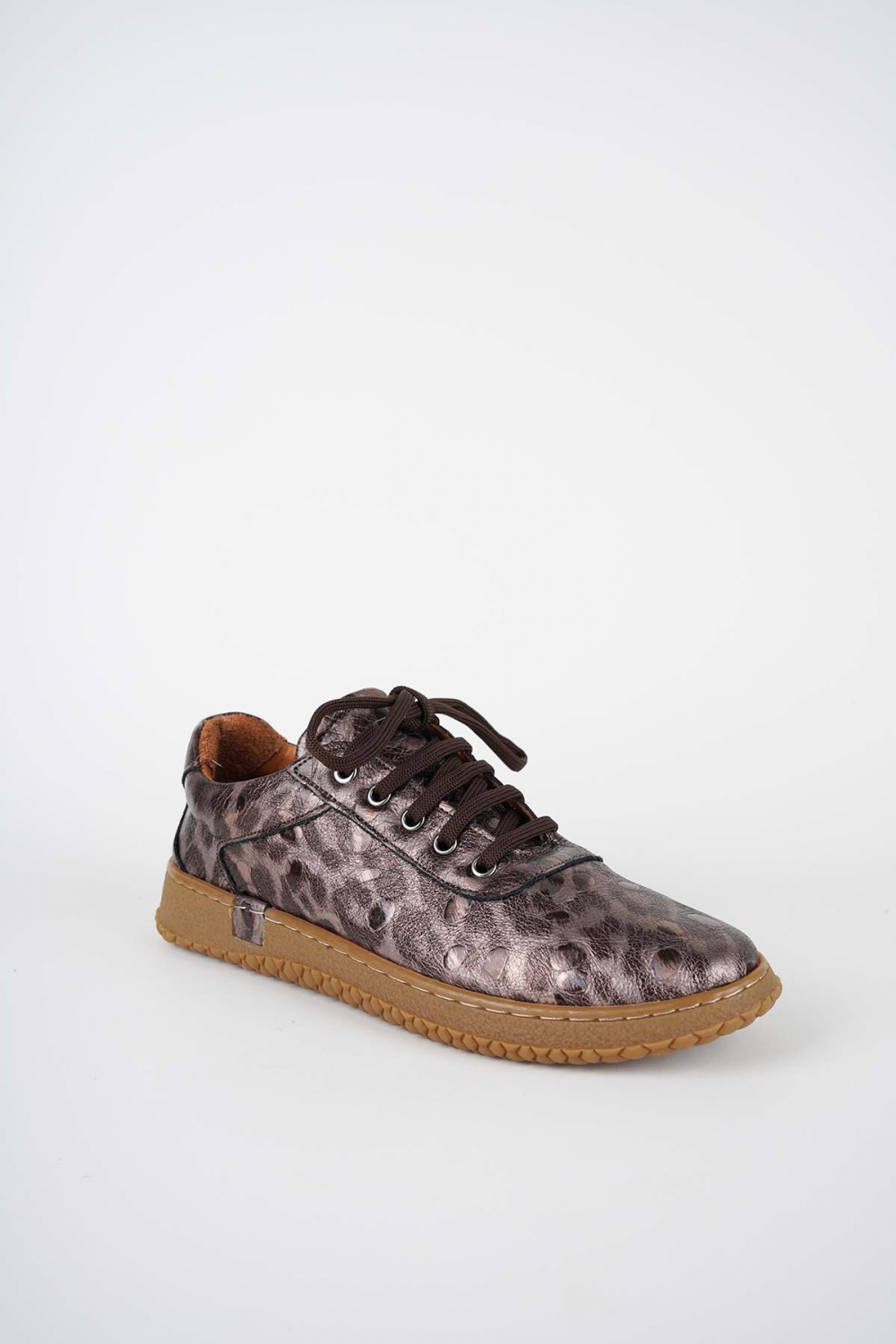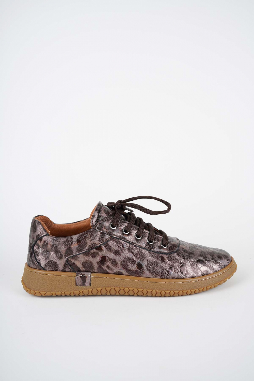 Hakiki Deri Metalik Kahve Baskılı Kadın Casual Ayakkabı 252186100