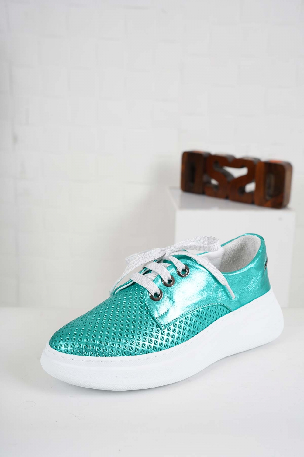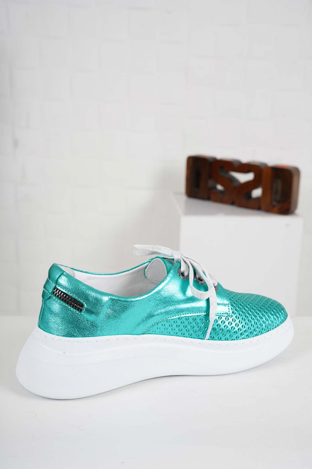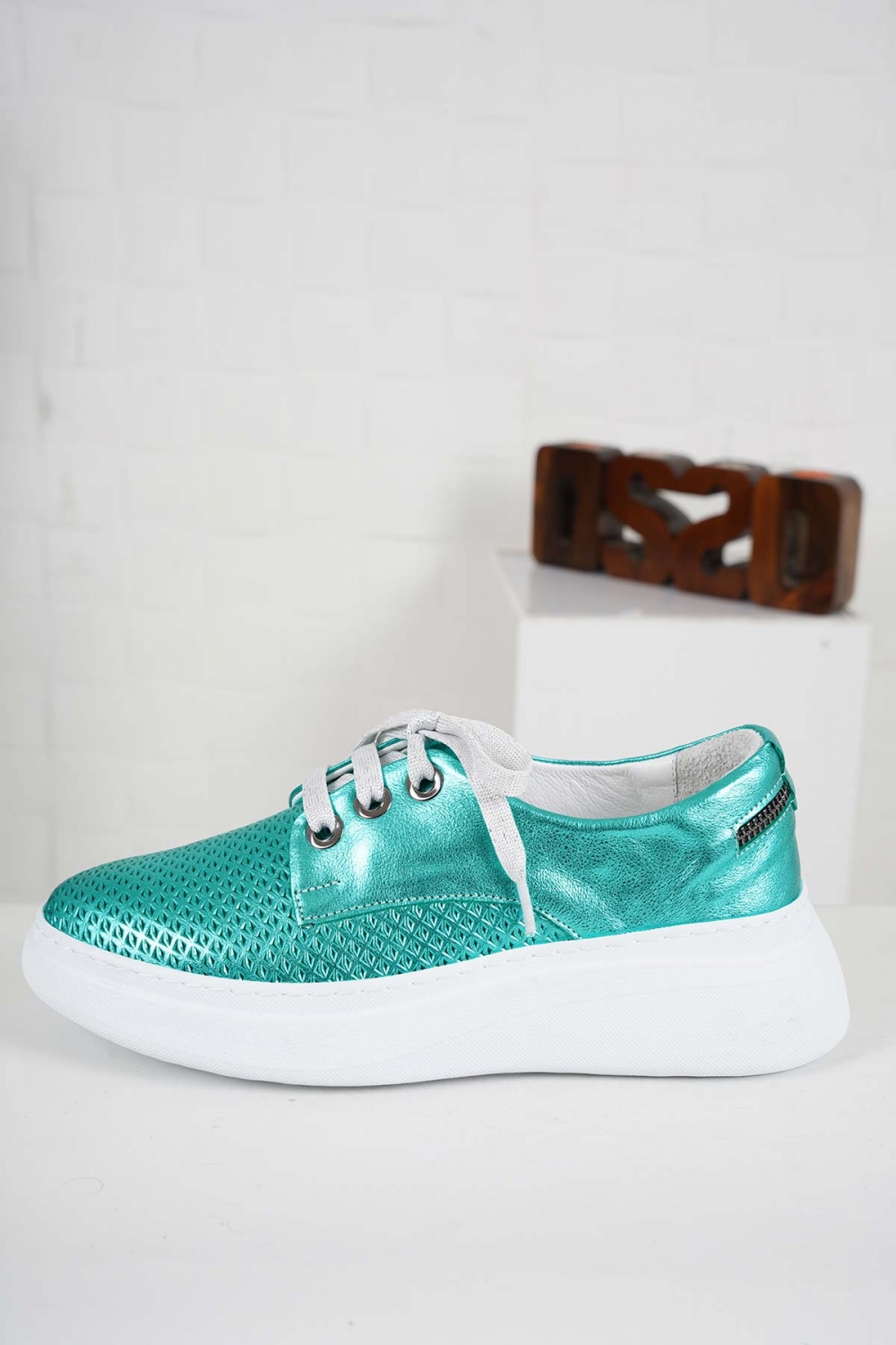 Hakiki Deri Metalik Turkuaz Kadın Casual Ayakkabı 241186106