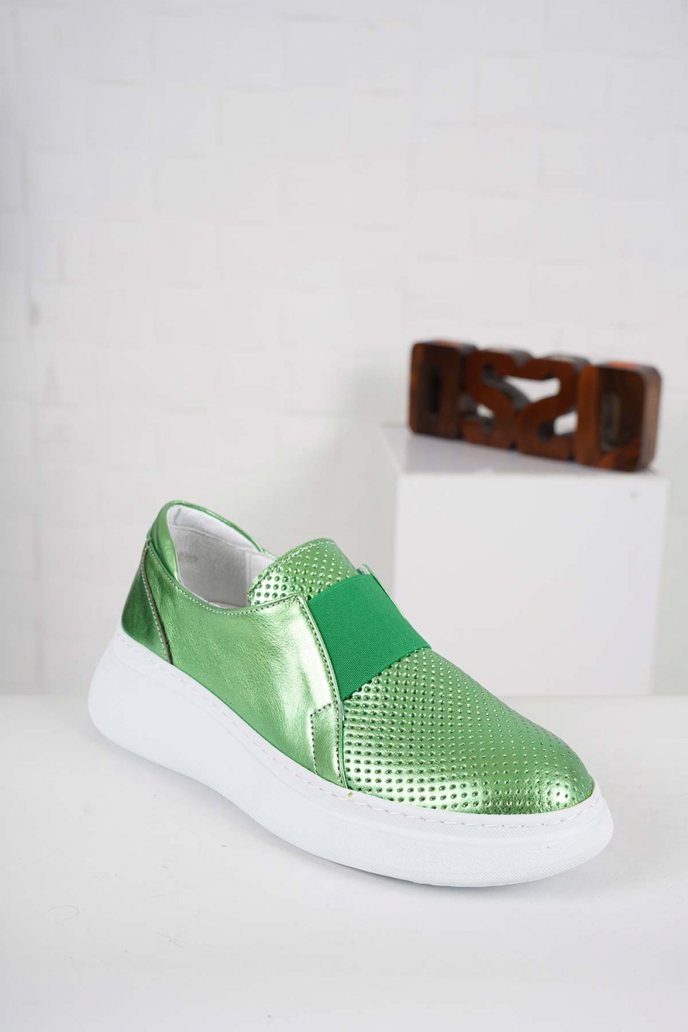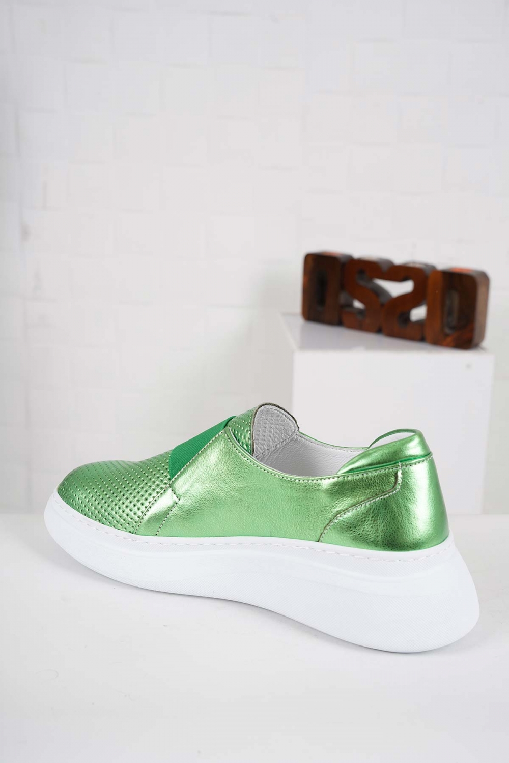 Hakiki Deri Metalik Yeşil Kadın Casual Ayakkabı 241186101