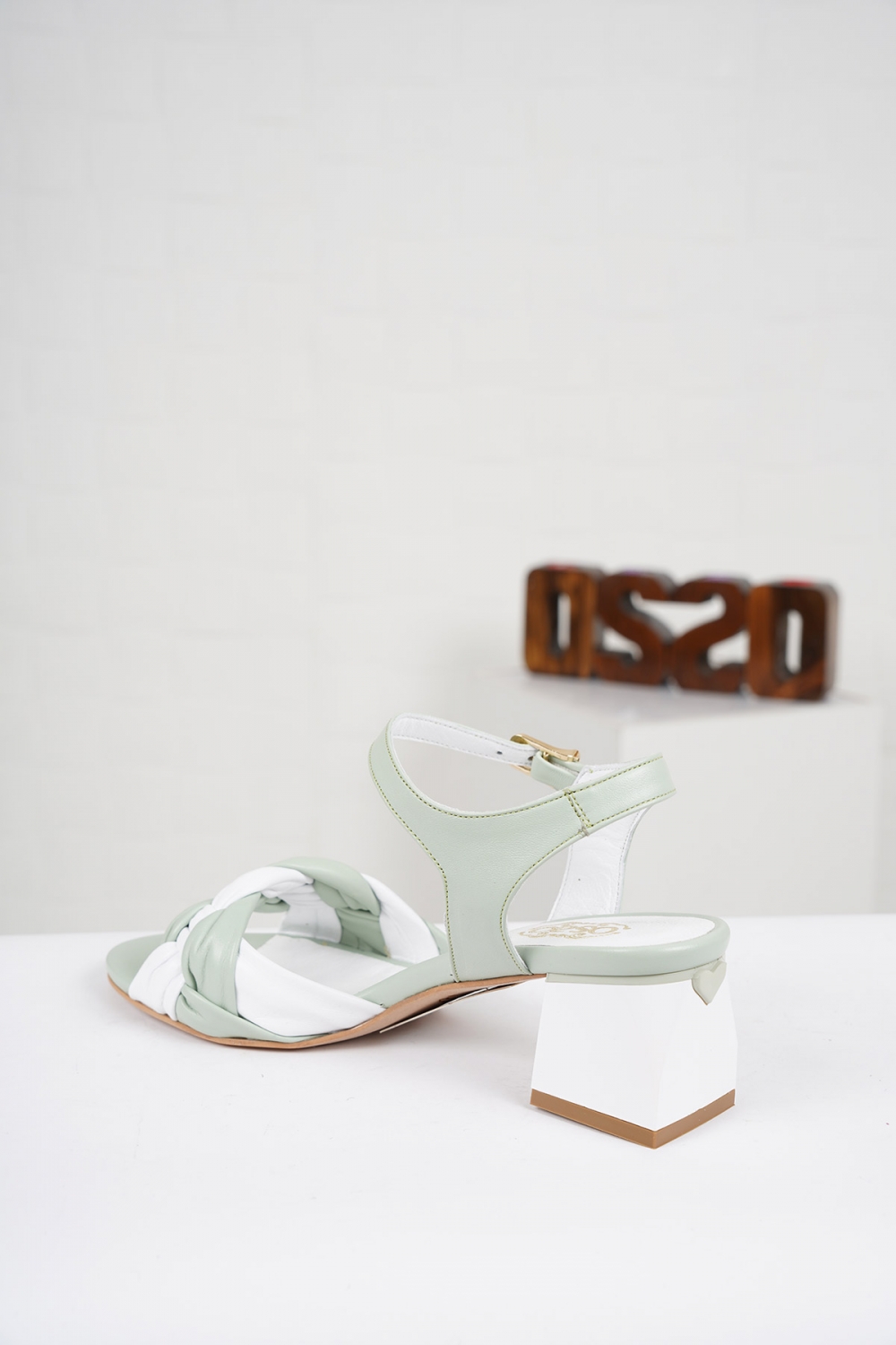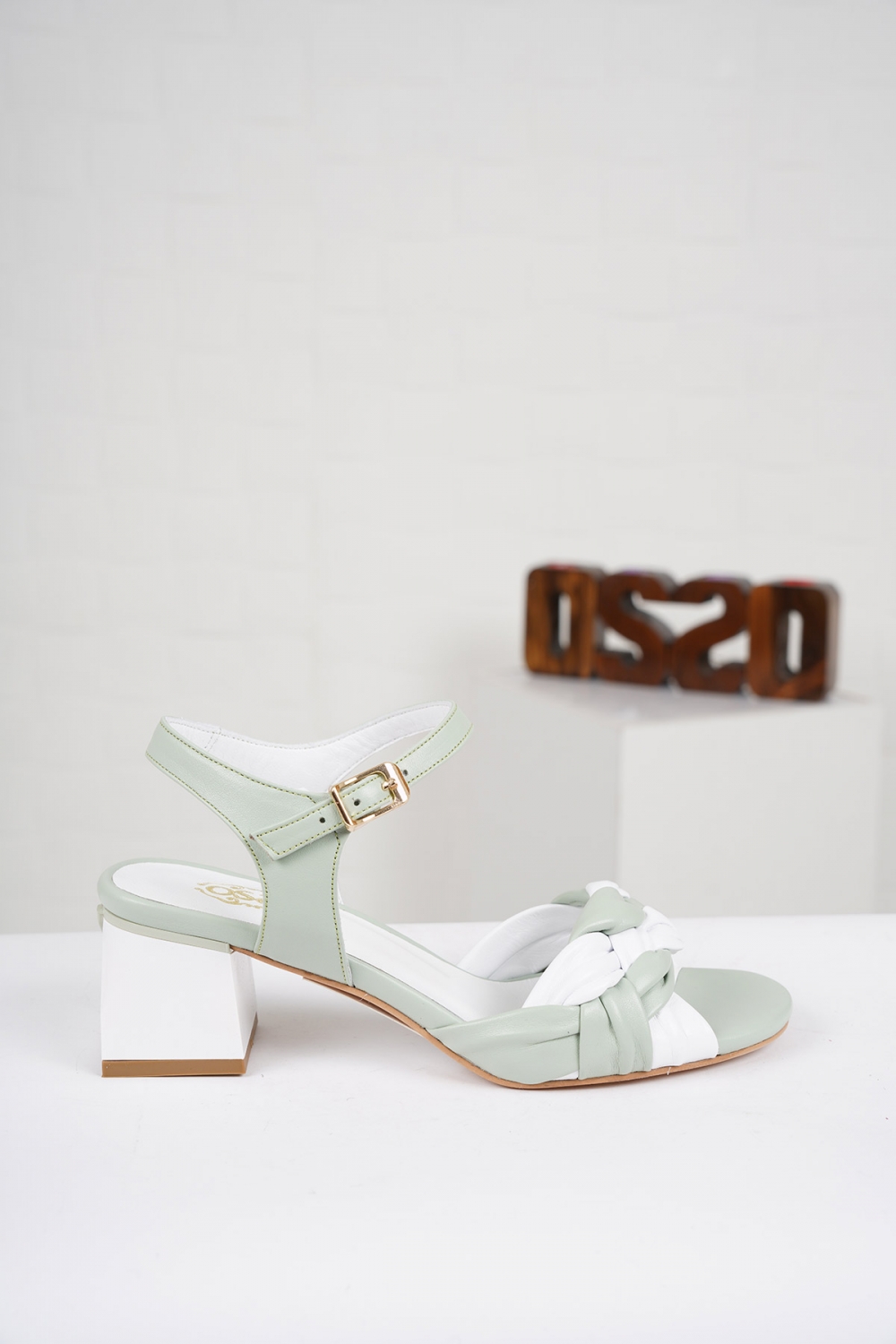 Hakiki Deri Mint-Beyaz Kadın Topuklu Sandalet 221127524