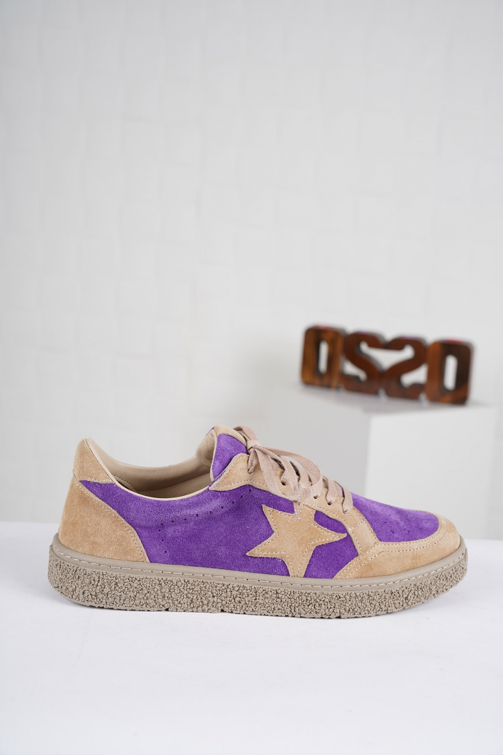 Hakiki Deri Mor-Camel Süet Kadın Spor Ayakkabı 222220101