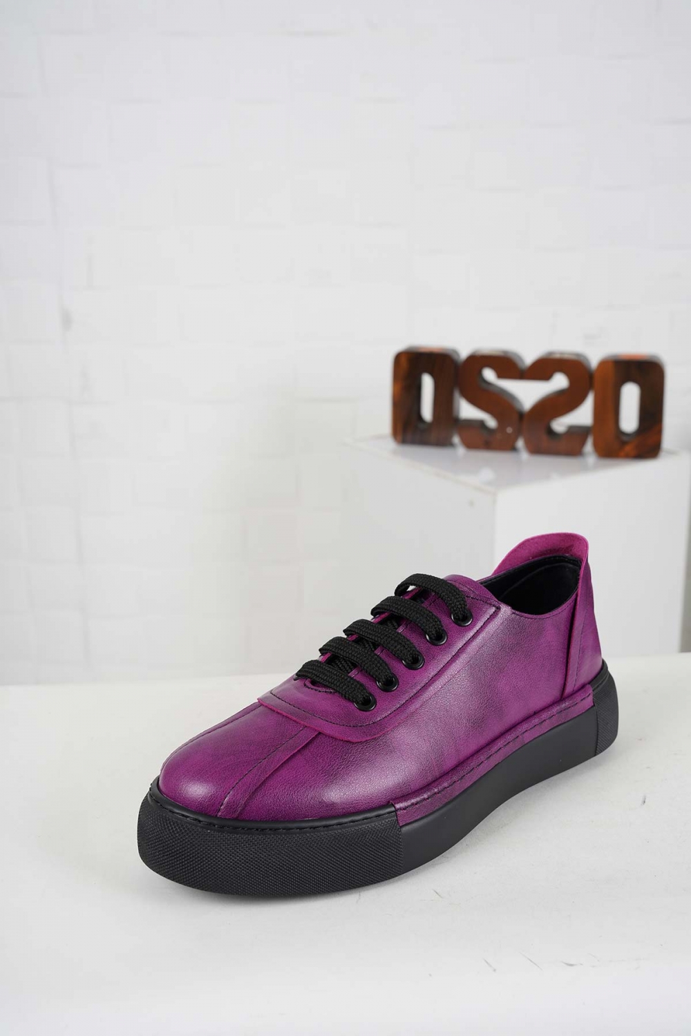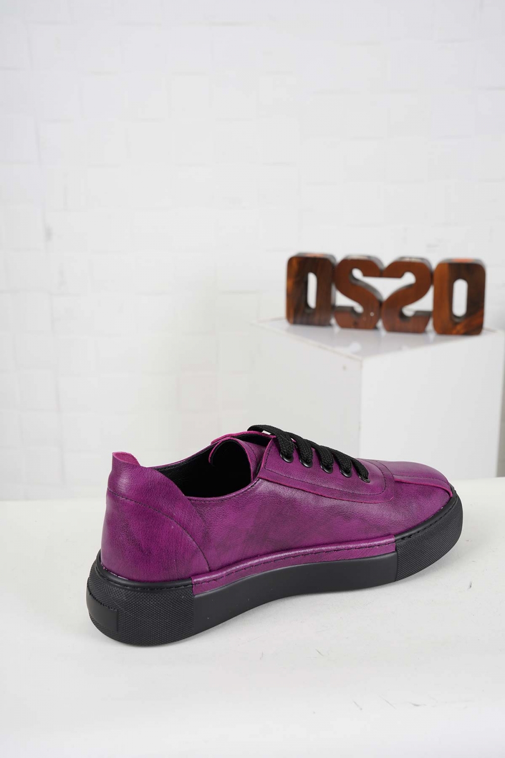Hakiki Deri Mor Fırça Baskılı Kadın Casual Ayakkabı 242136101